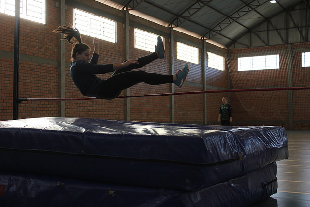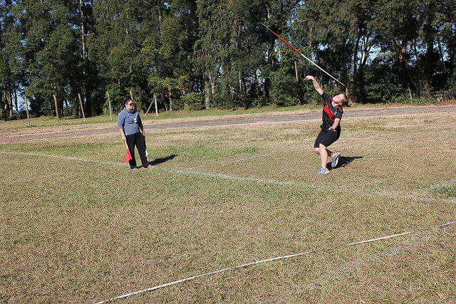 Os estudantes que vieram dos demais campi estavam entusiasmados com a possibilidade de conhecer outra realidade e interagir mais de perto com os colegas do Campus Ibirubá. Morgana Weber, aluna do Técnico em Informática Integrado do Campus Feliz, se preparava para o arremesso de peso quando comentou sobre a atividade: “É uma experiência muito bacana, antes nós não tínhamos a oportunidade de competir no atletismo e no futebol, agora podemos aprender com isso”. Além do arremesso de peso, Morgana competiu no salto em altura.
