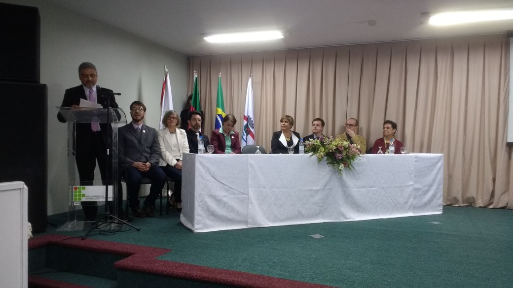 A mesa de autoridades foi composta pelo pró-reitor de Desenvolvimento Institucional, José Eli Santos dos Santos; a pró-reitora de Ensino, Clarice Monteiro Escott; a pró-reitora de Administração, Tatiana Weber; o pró-reitor de Pesquisa, Pós-graduação e Inovação, Eduardo Girotto; o pró-reitor adjunto de Extensão, Getúlio Jorge Stefanello Junior; o diretor de Gestão de Pessoas, Marc Emerin; a diretora do Campus Bento Gonçalves, Soeni Bellé; o representante da Comissão de Ensino, Rubilar Simões Junior; e a presidente da comissão própria de avaliação institucional, Eliana Borragini.