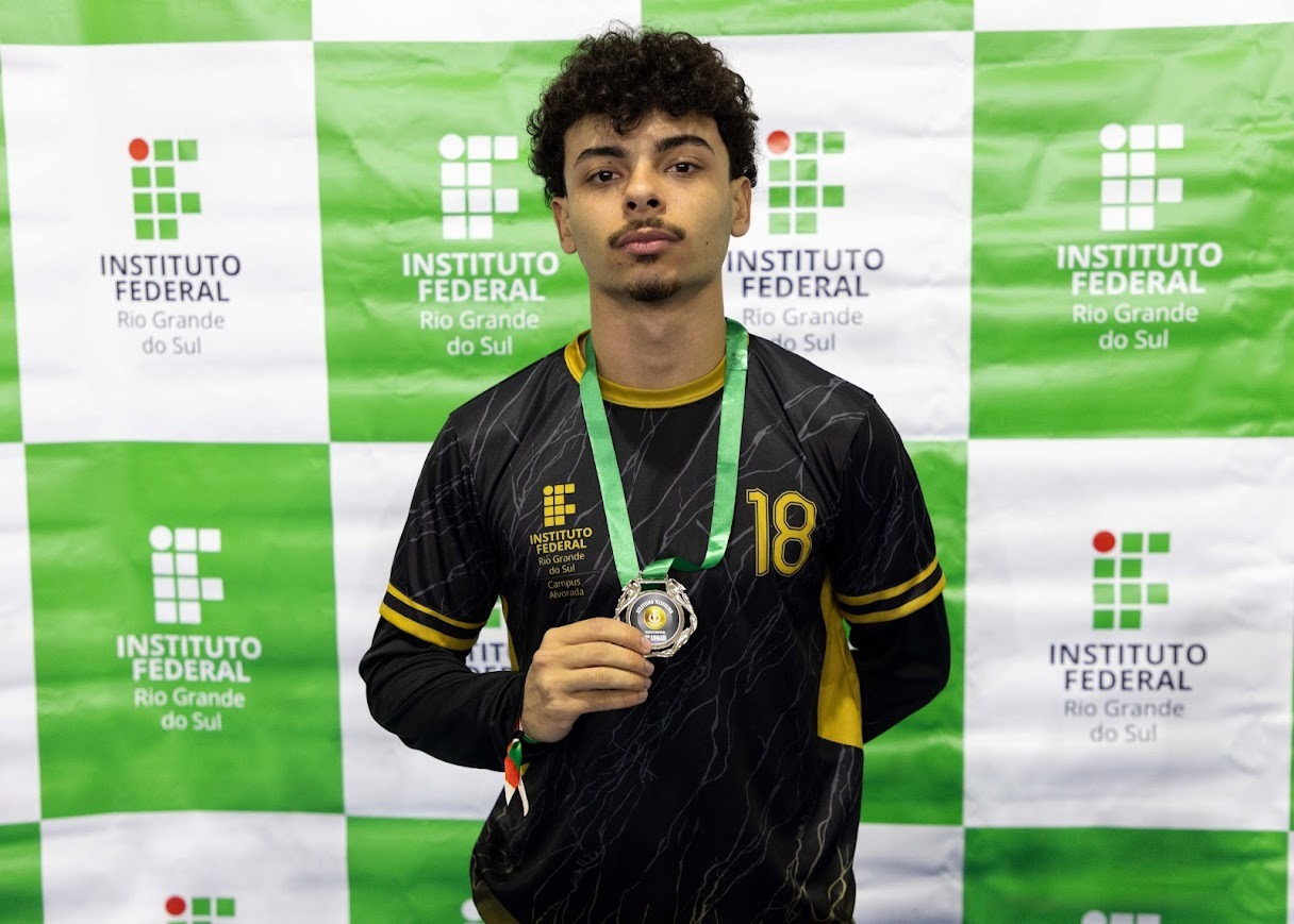 O destaque foi para Lucas de Araujo Godói, estudante do quarto ano do Curso Técnico em Produção de Áudio e Vídeo integrado ao ensino médio, que trouxe para o Campus Alvorada uma medalha de prata no salto em distância masculino.