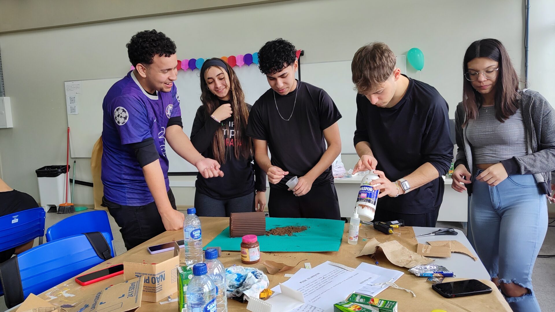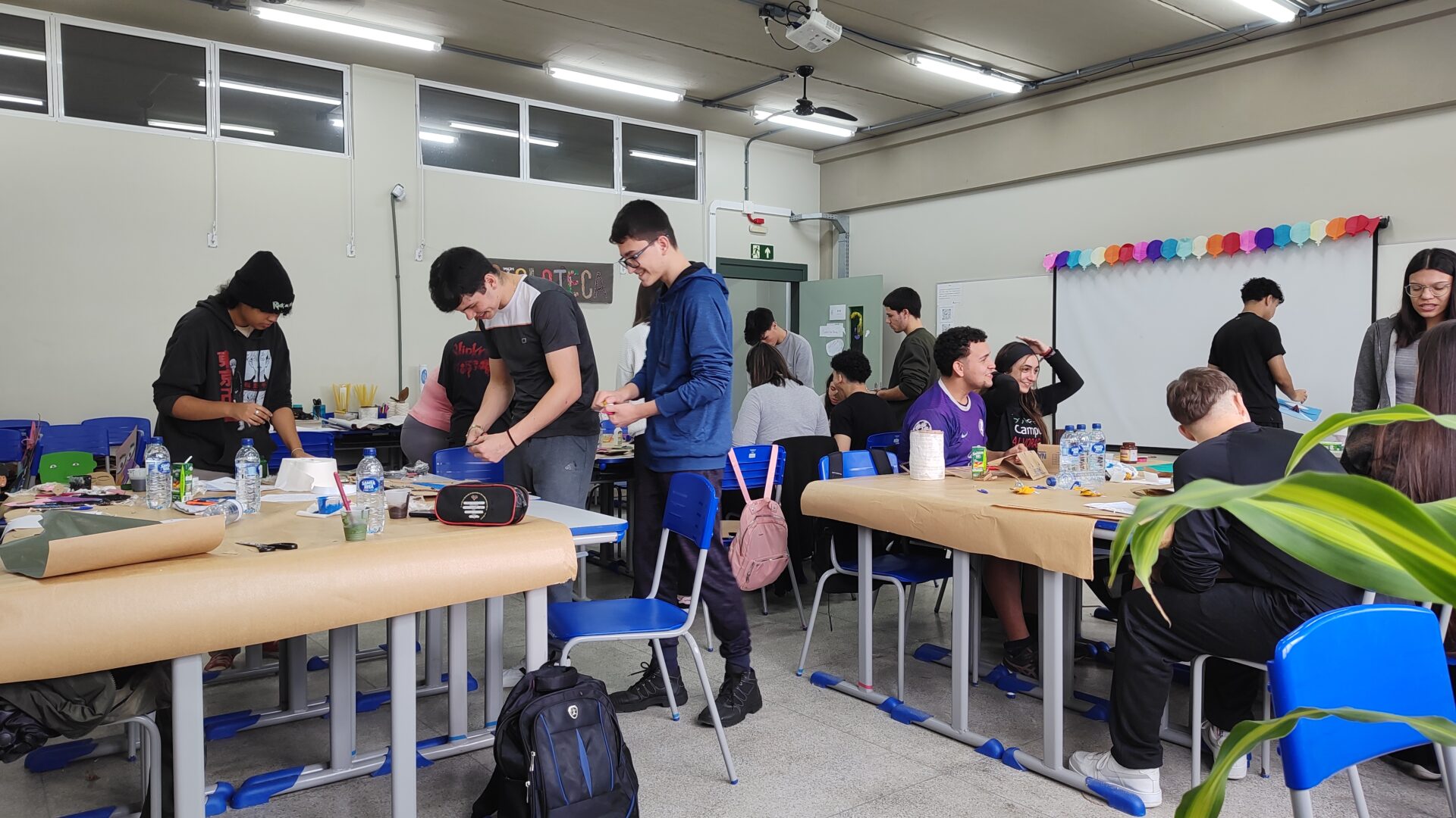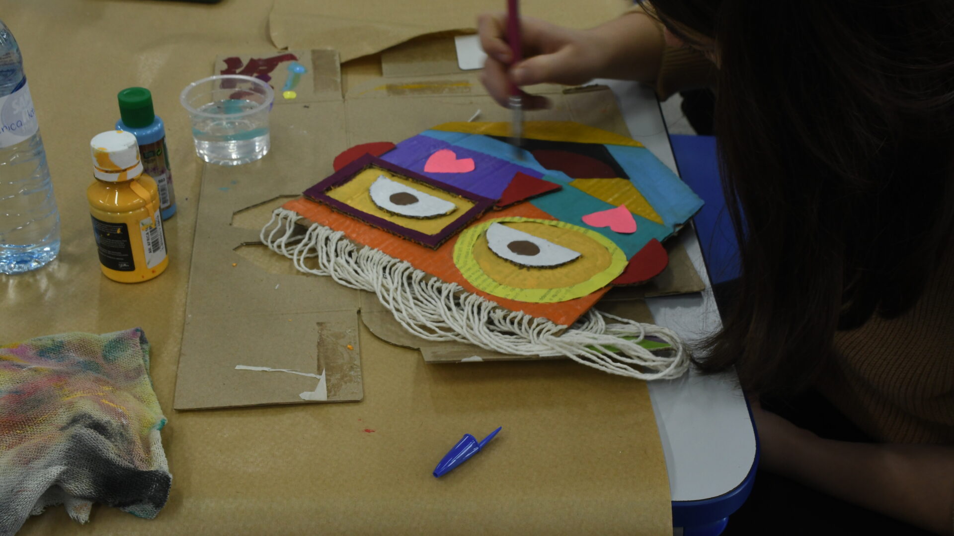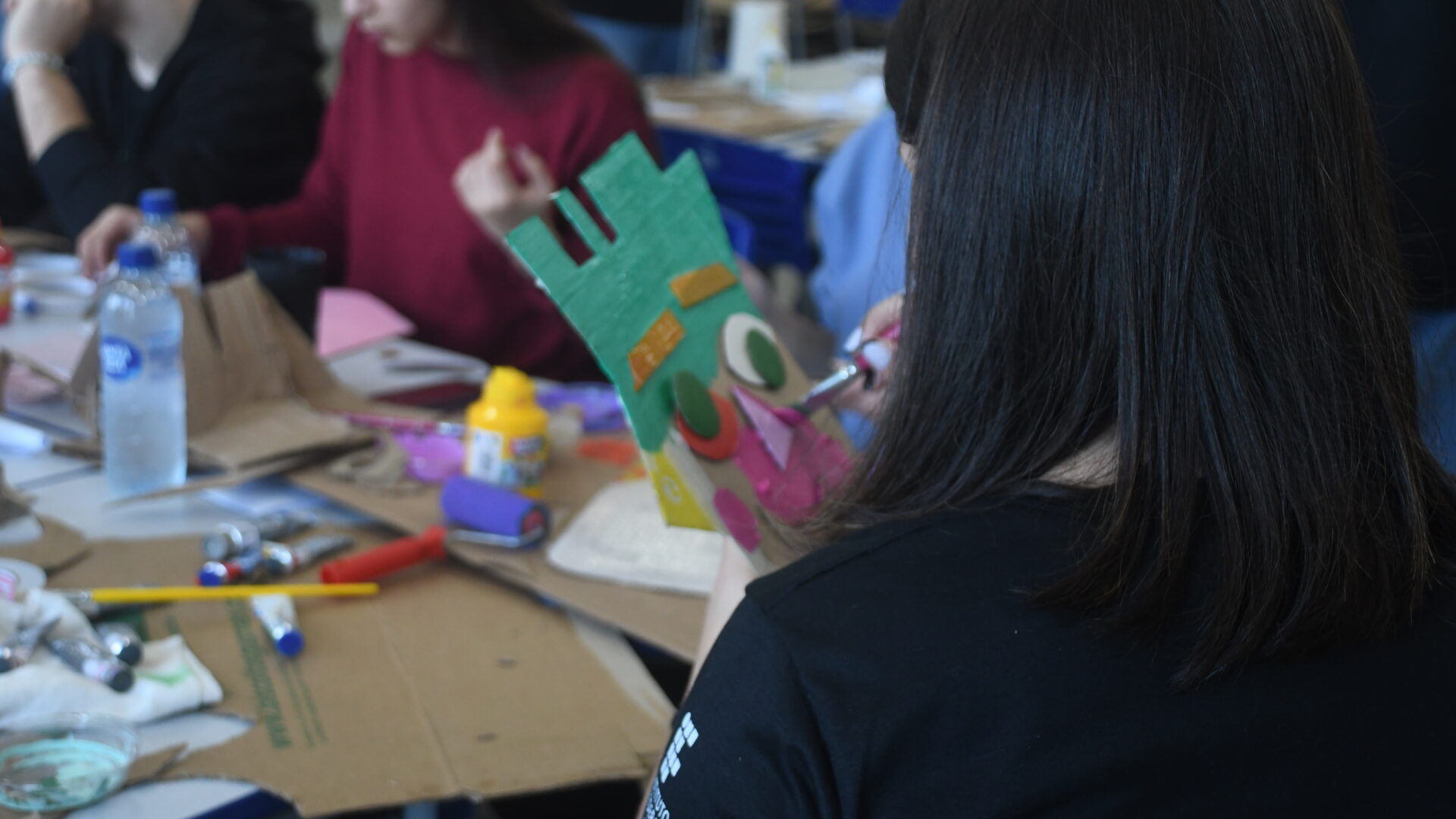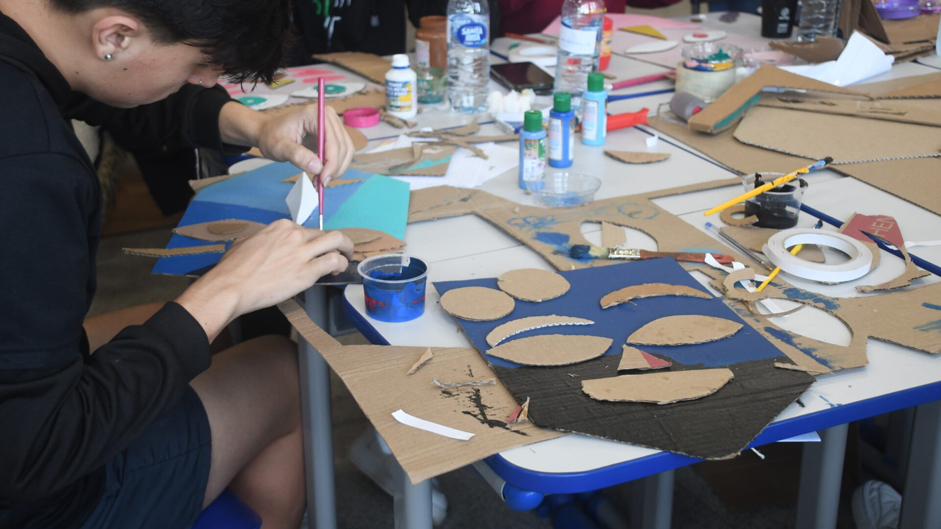 Durante a oficina, os estudantes Isabela, Eduarda, João e Renan conversaram sobre os resíduos sólidos urbanos enfatizando a necessidade de reduzir, reutilizar e reciclar nossos resíduos. Além disso, houve a explicação sobre os conceitos da responsabilidade compartilhada e a logística reversa. A oficina propôs uma atividade de experimentação, onde os alunos confeccionaram autorretratos reutilizando papelão e construíram murais retratando a demanda de recursos naturais para a fabricação de papel.
