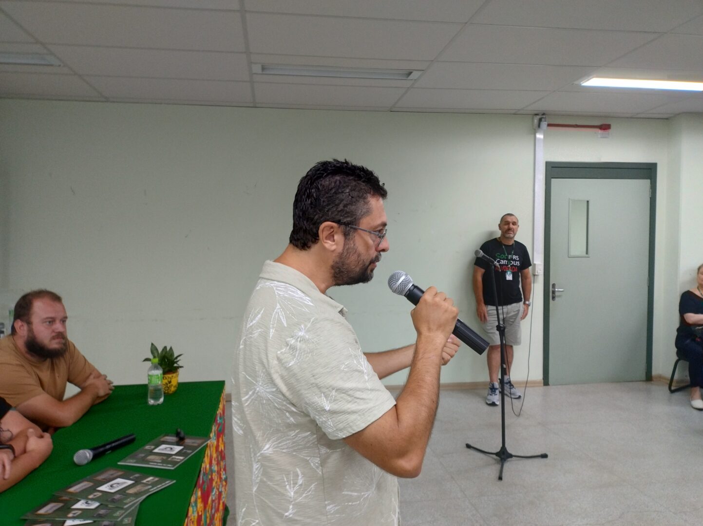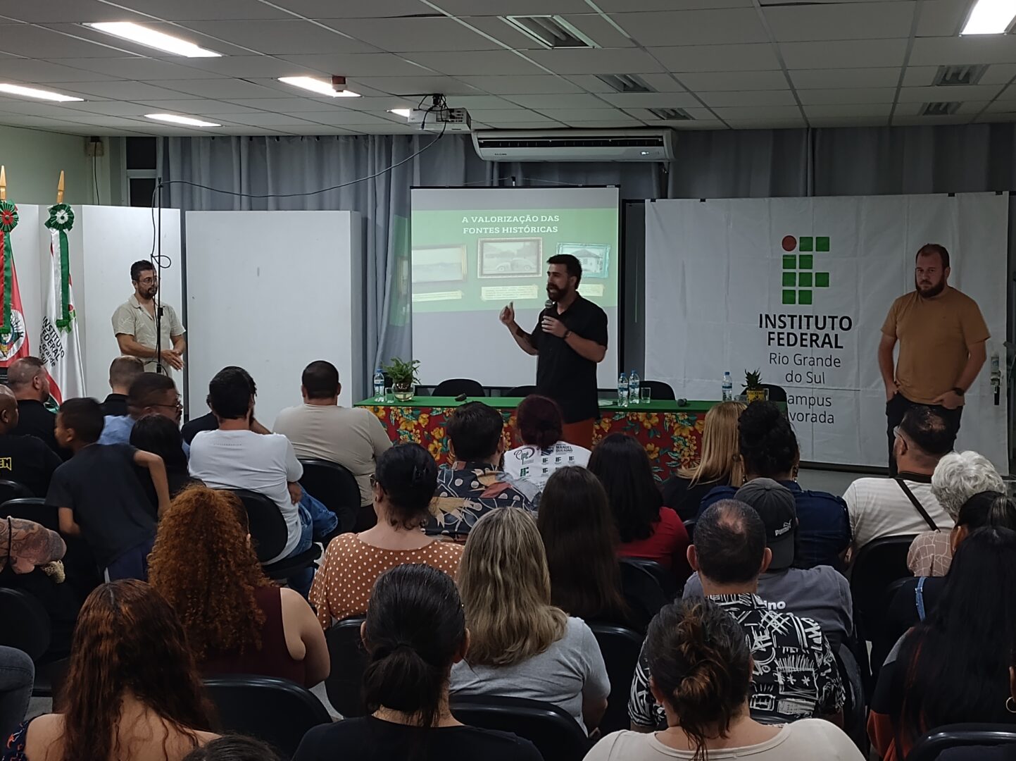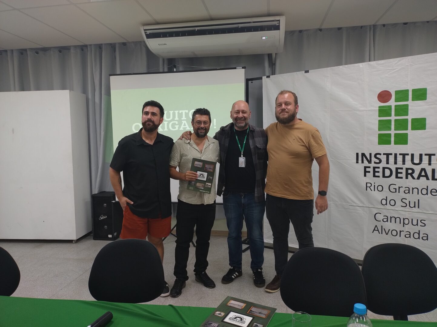 Junto do lançamento, ocorreu a roda de conversa que contou com a participação dos pesquisadores criadores da obra Fabiano Vaz, Éverton Souto Carvalho e Guilherme dos Santos Wunder. Estudantes e servidores do campus e membros da comunidade prestigiaram e interagiram durante a conversa, que contou ainda com a presença do secretário municipal da Cultura, Esporte e Juventude (SMCEJ) Nato Werlang e o secretário adjunto Beto Camparra, a vereadora Giovana Thiago e o vereador Kleiton Muller.
