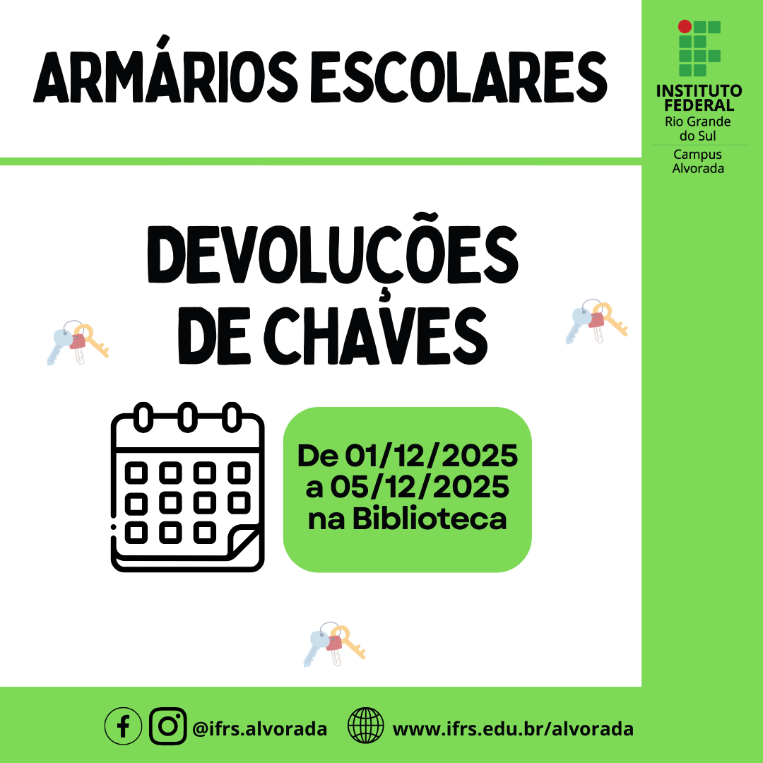 Entre 1º e 5 de dezembro, estudantes que utilizaram os armários escolares ao longo de 2025 precisam realizar a devolução das chaves na biblioteca.