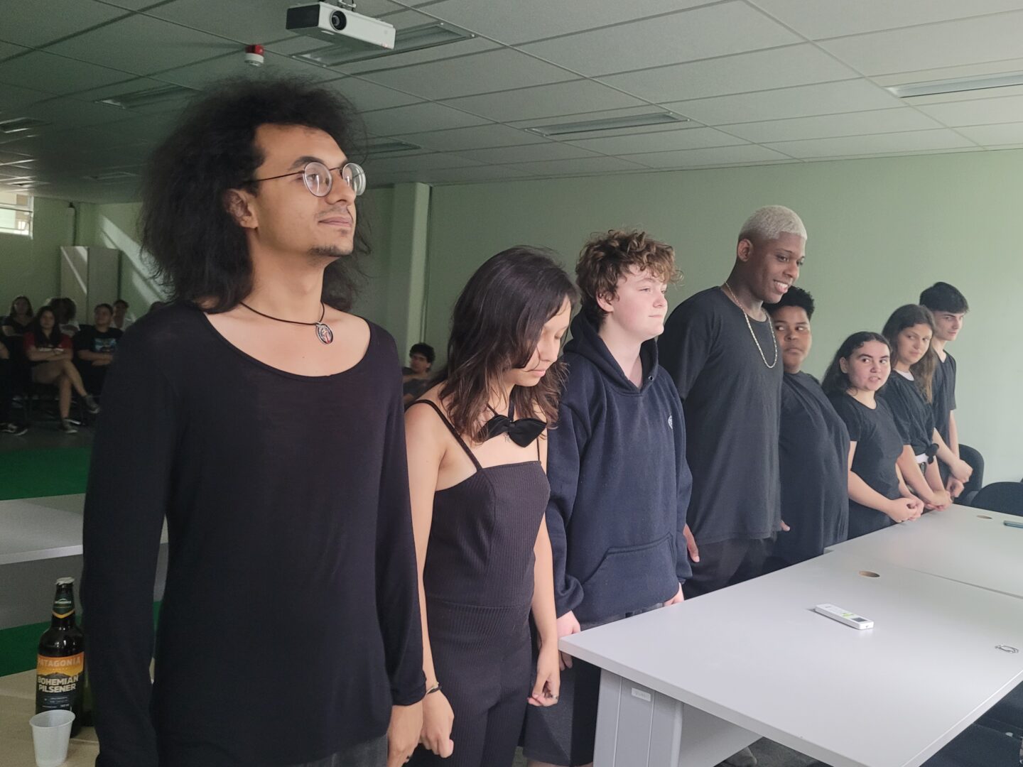 Os encontros resultaram em cenas que refletiam situações do cotidiano. A primeira turma falou sobre pensamentos que surgem de forma aleatória e ecoam em nossa mente. Já a segunda, escolheu como tema as diversas situações que podem acontecer em uma festa.