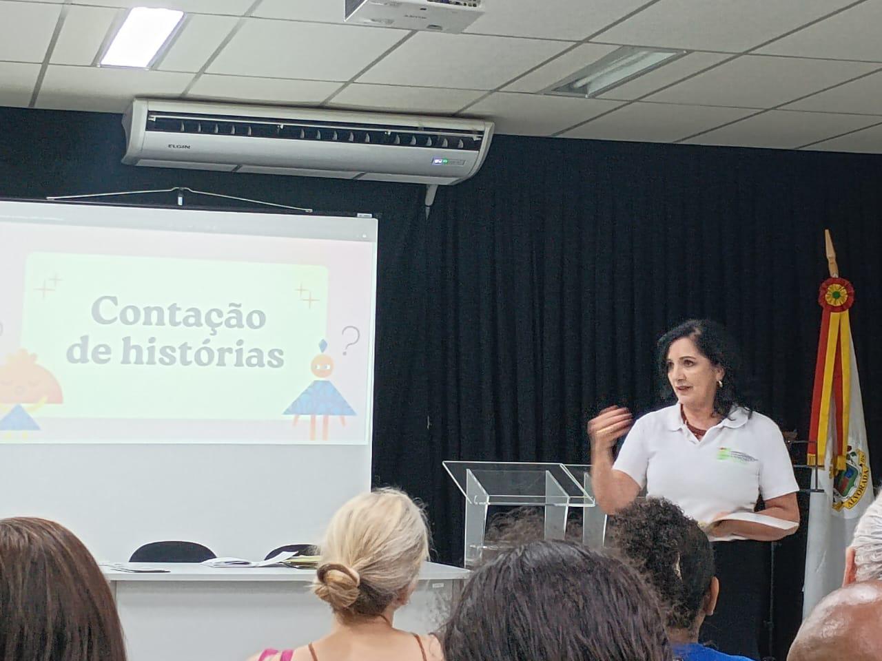 O relato foi realizado pela técnica em biblioteconomia e servidora do IFRS Campus Osório, Iracema Souto Ruiz, que trabalha com práticas de contação de história com crianças, jovens e adultos.