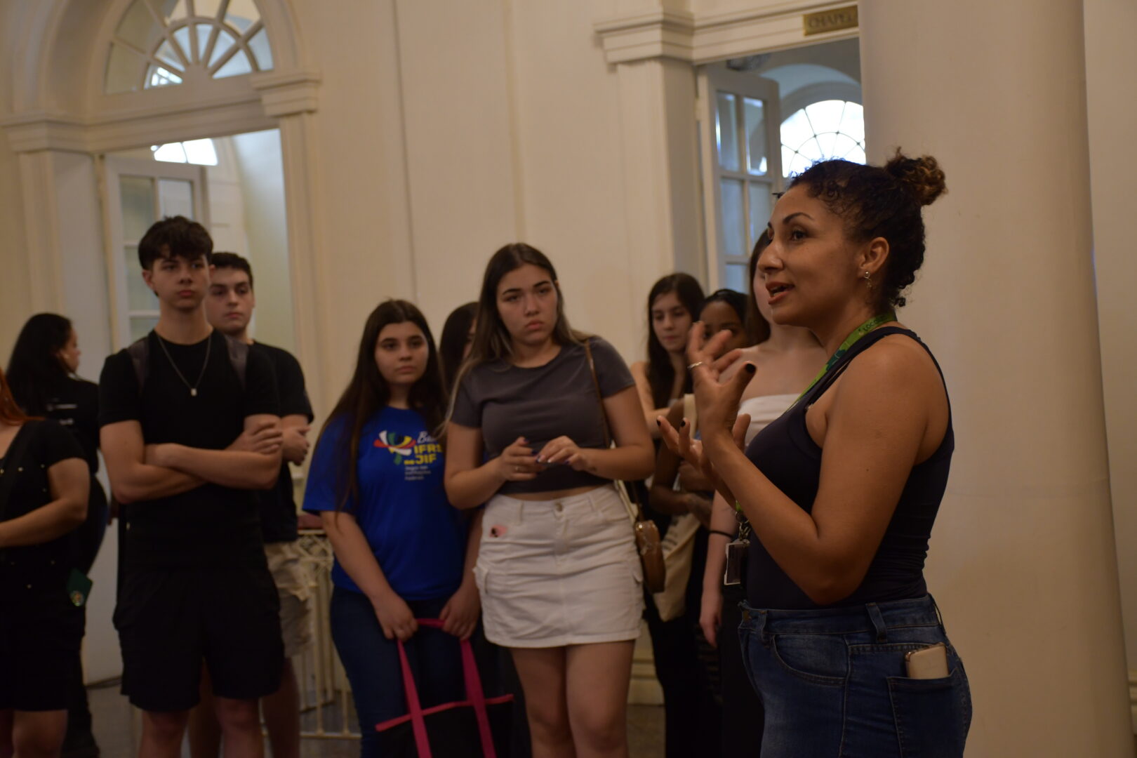 Estudantes do 3º ano do curso técnico em Meio Ambiente (integrado ao Ensino Médio) e do 2º semestre do curso técnico em Processos Fotográficos do Campus Alvorada do Instituto Federal de Educação, Ciência e Tecnologia do Rio Grande do Sul (IFRS) realizaram uma visita técnica ao Teatro de Arena de Porto Alegre e ao Theatro São Pedro. A saída de campo aconteceu no dia 11 de novembro.