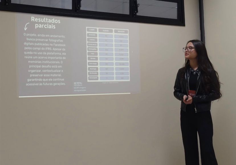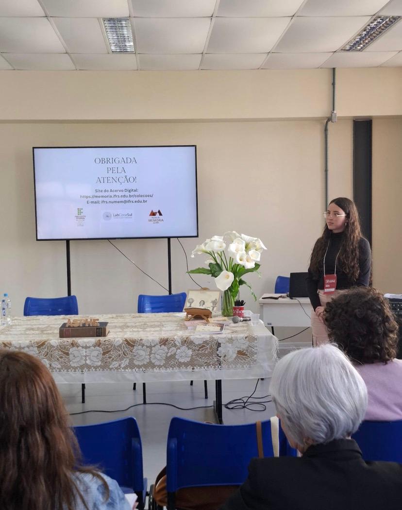 Já no dia 17 de outubro, foi a vez de participar da MostraPoa 2025, promovido pelo IFRS Campus Porto Alegre. Novamente o programa Casa de Dandaras esteve representado por Bruno Lopes e Eduarda Dutra, enquanto Luiza Guilardi apresentou a atuação do Núcleo de Memória do campus Alvorada na preservação de sua história. Também participaram as estudantes Alice Barra, com projeto de pesquisa relativo a digitalização de acervos audiovisuais do Museu de História da Medicina do Rio Grande do Sul, e Sophia da Rosa, com o trabalho voltado à História Social da Informática no Brasil em seus primórdios.