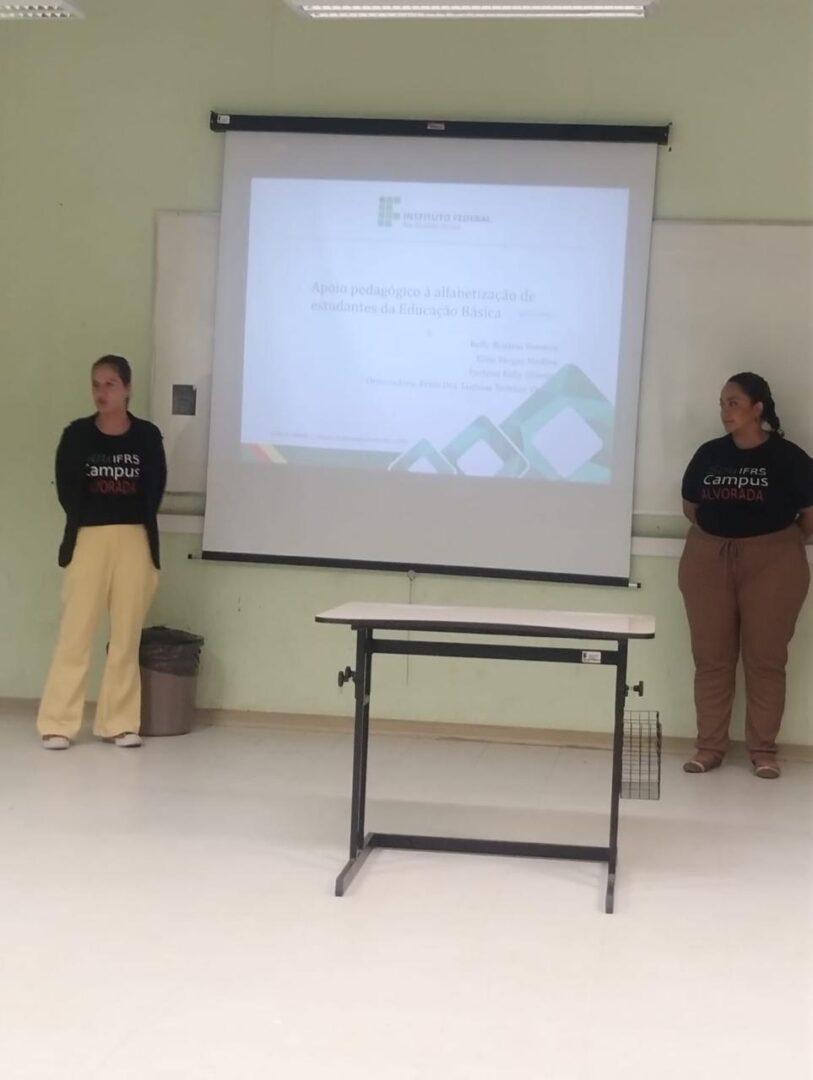 Na mesma data, na XIV Mostra Científica do IFRS Campus Restinga, o curso de Pedagogia esteve presente com o trabalho “Apoio pedagogico à alfabetização de estudantes da educação básica”, apresentado pelas graduandas do curso Kelly Rosário Ferreira e Eliza Vargas Medina.