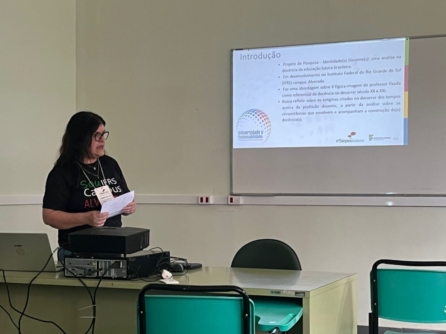 Ainda no dia 17, no campus central da UERGS, a estudante Marilice Strada da Fonseca (Curso de Licenciatura em Pedagogia) participou do 11º Siepex (Salão integrado de Ensino, Pesquisa e Extensão) apresentando o projeto de pesquisa intitulado Identidade(s) docente(s): reflexões da construção docente na Educação Básica. O projeto de pesquisa faz parte da área de Pedagogia e contribui para a formação crítica-reflexiva dos futuros(as) pedagogos(as).