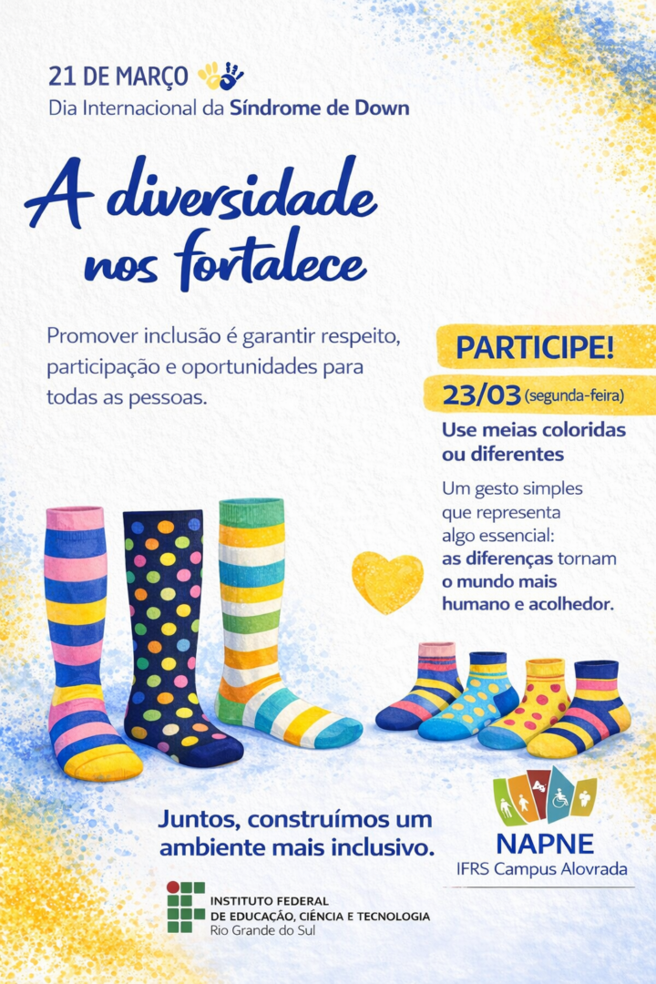 Como forma de expressar esse compromisso coletivo e em consonância com o movimento global “Lots of Socks”, convidamos estudantes, servidores e colaboradores a participarem de uma ação simbólica no dia 23/03/2026 (segunda-feira):