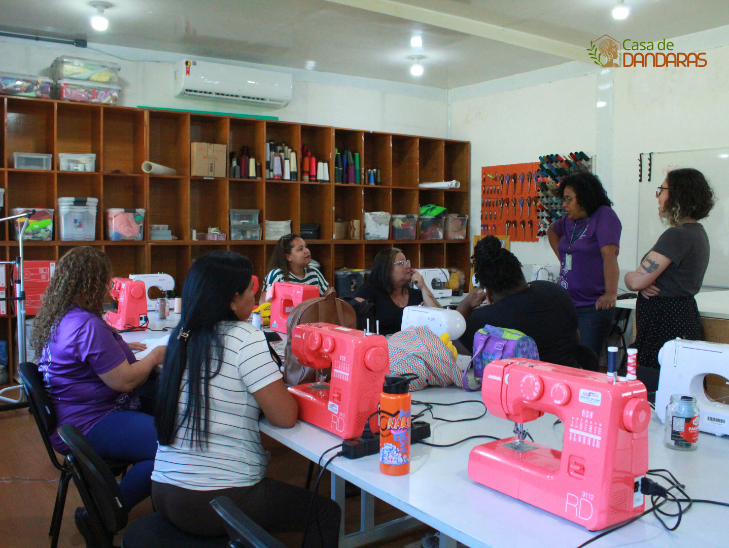 No dia 15 de outubro, a turma de 2024 do curso de Assistente de Costura do Programa Mulheres Mil participou de um reencontro especial no Campus Alvorada. A atividade foi realizada no ateliê do Programa Casa de Dandaras e contou com a presença da professora Carol Wudich, que conduziu uma oficina de costura, promovendo momentos de aprendizado, troca de experiências e fortalecimento dos vínculos entre as participantes.