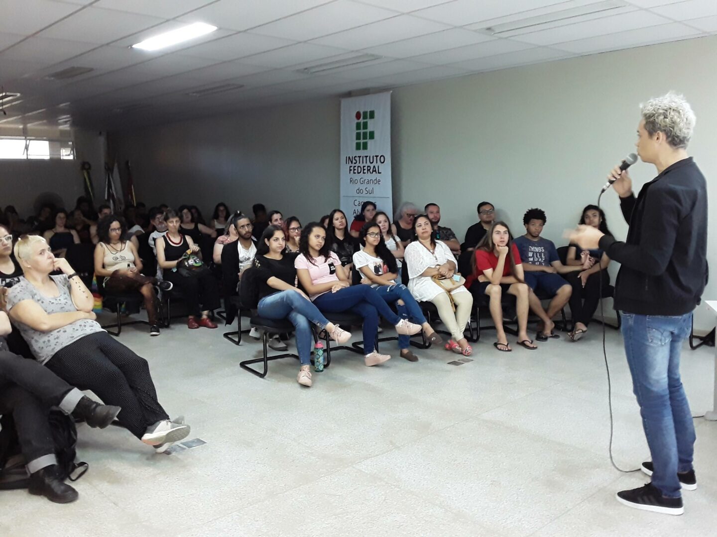O Campus Alvorada recebeu, no dia 25 de novembro, o ator Silvero Pereira para uma conversa sobre sua trajetória artística, processo criativo e articulações entre arte e ativismo LGBT+ em seus trabalhos. Silvero praticamente abriu sua fala dizendo que se reconhece como gente, como artista depois que entra no Instituto Federal do Ceará, em Fortaleza.