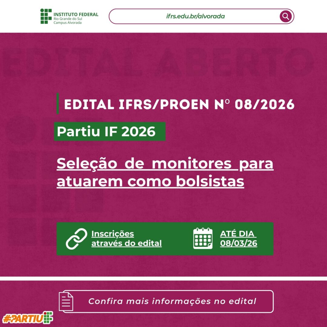 O IFRS Campus Alvorada informa que no dia 23/03 (segunda-feira) no auditório do campus, acontecerá a aula inaugural do semestre 2026/1 do curso superior de Pedagogia – Licenciatura. A atividade acontecerá das 19h30 às 21h30 com a professora Drª Silvia de Castro Bertagnolli, professora do IFRS campus Porto Alegre que refletirá sobre o tema: Inteligência Artificial no contexto da educação.…