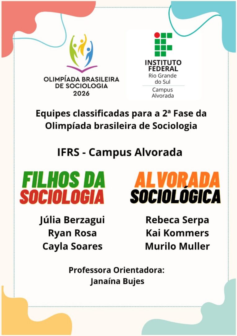 Equipes formadas por estudantes do IFRS Campus Alvorada são classificadas para a segunda fase da Olimpíada Brasileira de Sociologia
