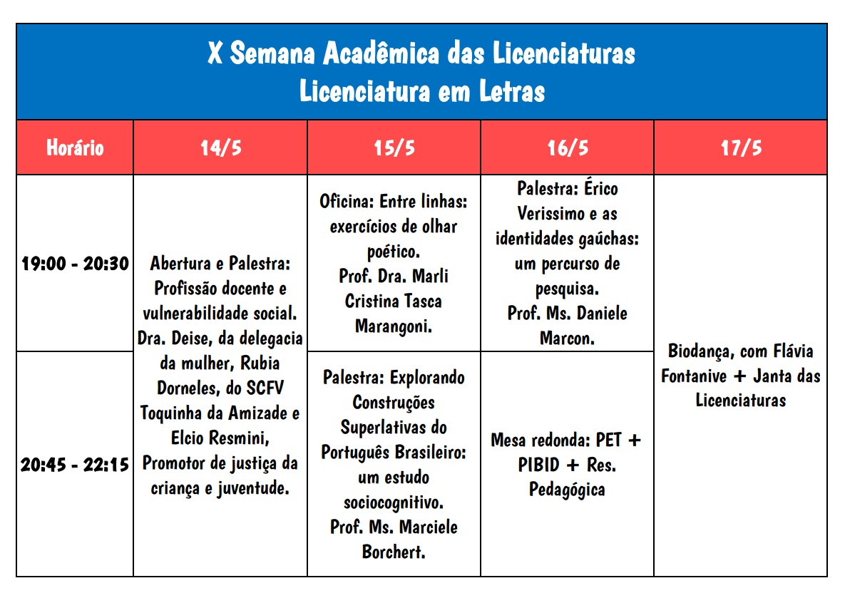 Estão abertas as inscrições para a X Semana acadêmica das Licenciaturas