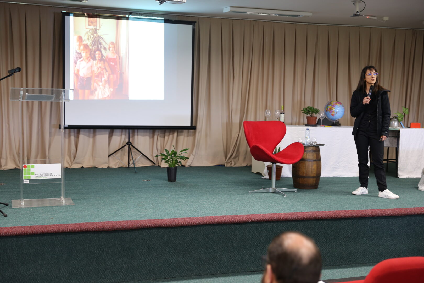 Na sequência, aconteceu a palestra de abertura, ministrada pela professora Flávia Twardowski, intitulada “A ciência transformando vidas”. Na ocasião, ela apresentou o relato de vários projetos desenvolvidos pelos seus orientados, os quais vêm recebendo reconhecimento regional, nacional e internacional.