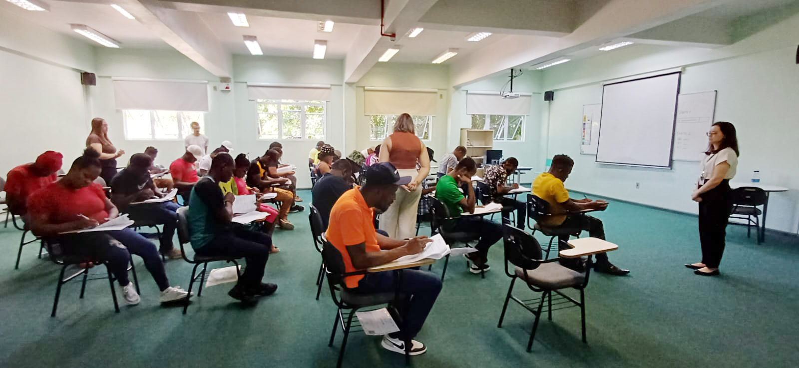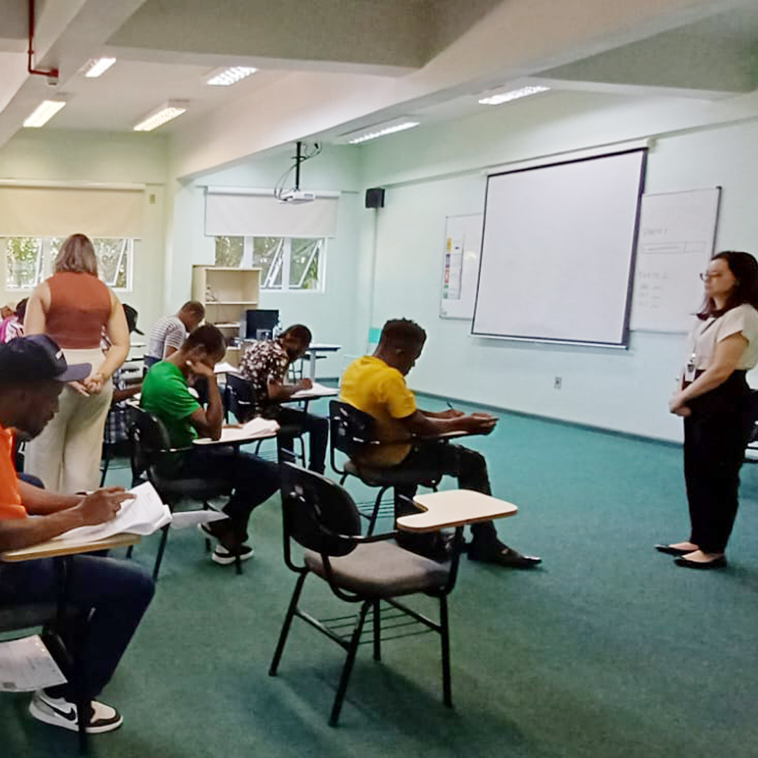 No último sábado, dia 13 de dezembro, ocorreu no Campus Bento Gonçalves a aplicação de provas presenciais para estrangeiros, imigrantes e refugiados que realizaram algum curso EaD ou on-line de língua portuguesa oferecido pelo IFRS. A prova tem como objetivo avaliar a capacidade de compreensão, interpretação e comunicação básica em língua portuguesa e é uma exigência do Ministério da Justiça e Segurança Pública para o processo de naturalização brasileira. Realizaram a prova 30 pessoas de diferentes nacionalidades, dentre elas Haiti, Senegal e Filipinas.