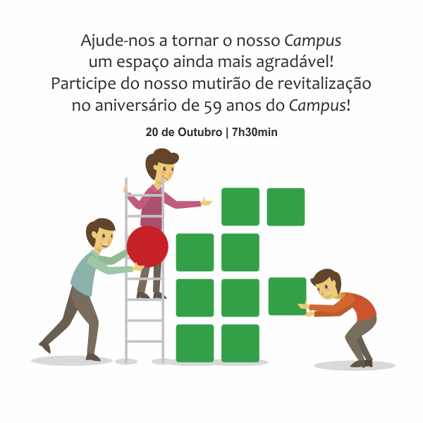 O mutirão começa às 7h30min do sábado (20/10) e serão realizadas tarefas de limpeza, pintura e jardinagem. No final da manhã será servido bolo e suco de uva produzido na Vinícola-Escola do campus, em comemoração aos 59 anos da instituição.