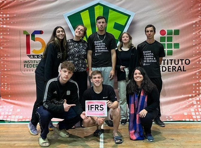 Estudantes do Campus Bento Gonçalves e a professora Cibele Alves dos Santos compõem a delegação do IFRS que participa da edição 2023 dos Jogos dos Institutos Federais da Região Sul (JIFSul), no período de 29 de agosto a 1º de setembro, em Blumenau/SC.