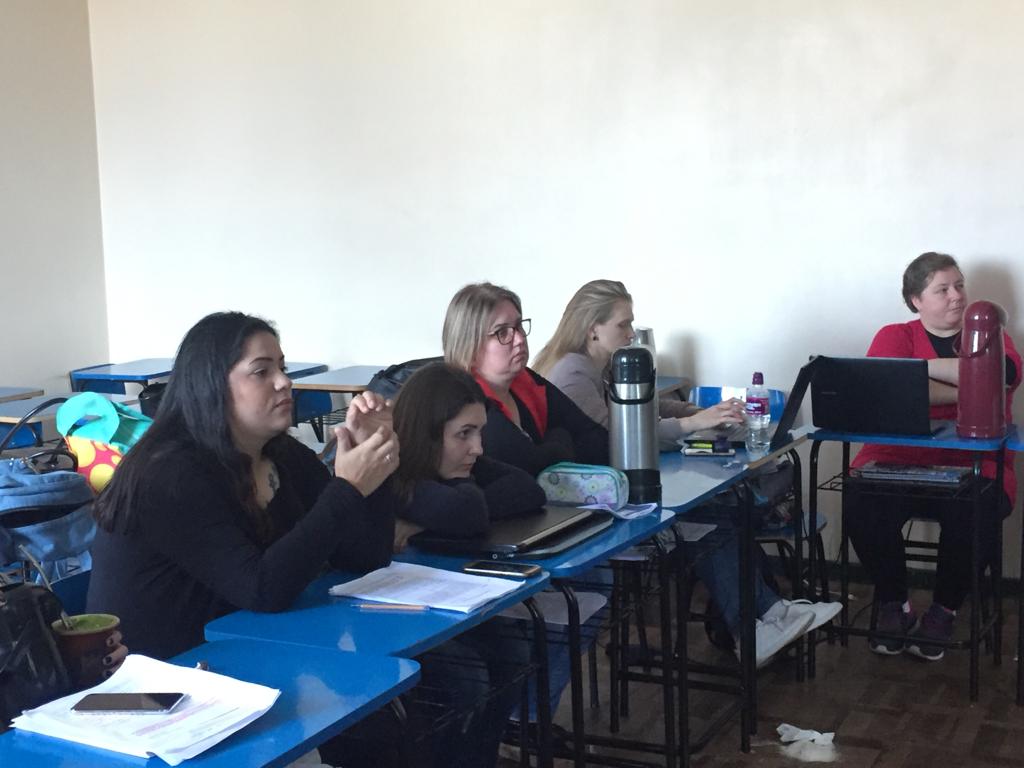 O curso de Pedagogia Parfor – Turma 2018 – do Campus Bento Gonçalves realizou no último sábado, dia 29 de junho, o seminário de apresentação dos ensaios interdisciplinares elaborados pelos discentes. O tema gerador dos ensaios foi a Infância. Cada estudante desenvolveu um ensaio reflexivo a partir do tema em diálogo com os componentes curriculares do semestre. Docentes que atuaram no semestre participaram do seminário, contribuindo com reflexões, críticas e sugestões com o intuito de aperfeiçoar e aprofundar os ensaios apresentados. A partir do Projeto Pedagógico do curso, em cada semestre, os docentes que atuam no curso devem articular atividades interdisciplinares que serão desenvolvidas no decorrer do período letivo. Através de reuniões da coordenação do curso com os docentes e com as orientações aos alunos, os ensaios contribuem para a produção textual e a pesquisa sobre temas relevantes para a formação docente que acontece por meio de atividades individuais e coletivas. Dessa forma, a aprendizagem ocorre através da pesquisa, do comprometimento ético e intelectual de cada participante com vistas a uma formação alicerçada nos fundamentos da educação transformadora e libertadora da formação humana que abrange as dimensões intelectual, profissional, pessoal e social. O encontro foi um momento importante e significativo no processo de formação que está sendo realizado pelo curso de Pedagogia do Campus Bento Gonçalves, com apoio da CAPES.