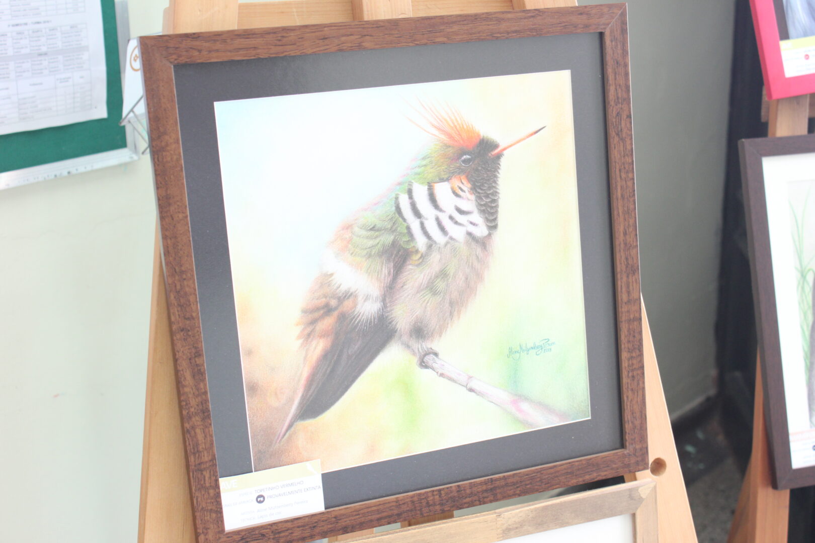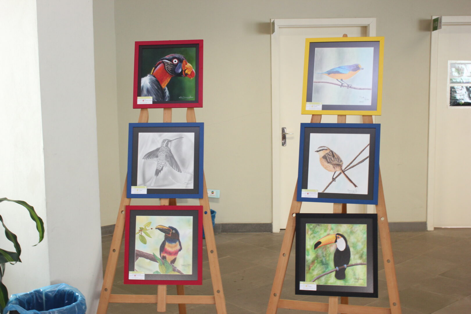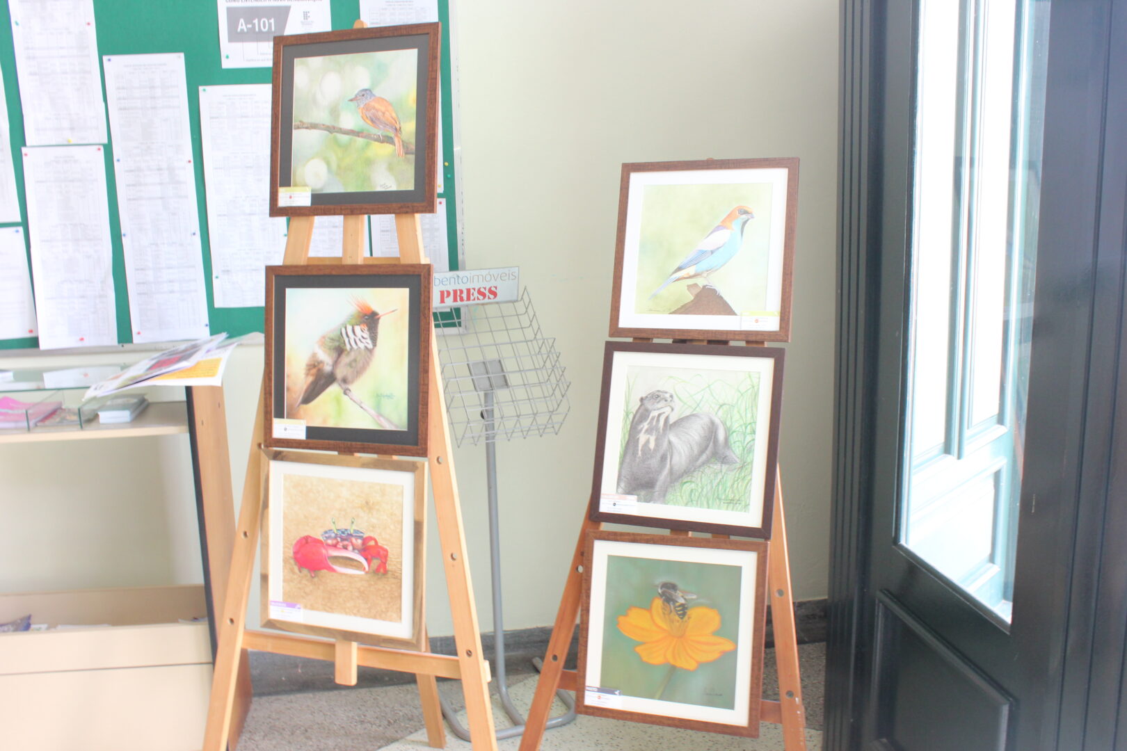 As imagens produzidas em diferentes técnicas de pintura, como aquarela, pastel, lápis de cor, grafite ou por meio digital, apresentam também o grau ou status de extinção da espécie retratada em cada quadro. Entre aves, peixes, mamíferos e invertebrados, podemos observar o Urubu-Rei, a Murucutu, o Topetinho-Vermelho e a Cutia. Entre os artistas que apresentam seus trabalhos, estão alguns de nossos atuais e ex estudantes. A exposição ficará à disposição da comunidade até o início do mês de maio.