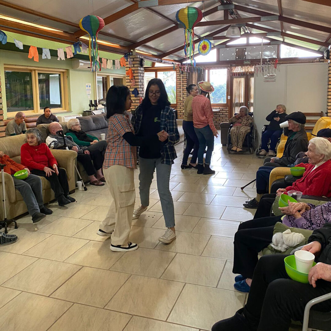 Na quarta-feira, 3 de julho, integrantes e voluntários do Projeto COMpaixão promoveram uma Festa Julina no Lar do Ancião, instituição de Bento Gonçalves que acolhe aproximadamente 60 idosos. Durante a festividade os moradores e os participantes do projeto comeram pipoca, bolo, tomaram chá e se divertiram ao som de músicas típicas. Compartilhar conteúdo: Facebook Twitter LinkedIn Pinterest WhatsApp