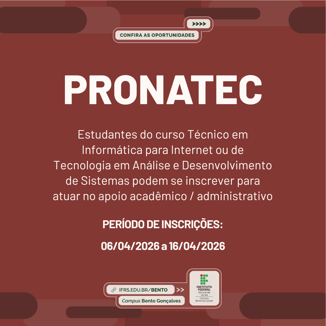No dia 30 de março de 2026, os estudantes do 3º ano do Curso Técnico de Administração do Campus Bento Gonçalves participaram de uma visita técnica à vinícola Casa Valduga. A atividade foi desenvolvida de forma integrada entre os componentes curriculares de Planejamento Estratégico, ministrado pela professora Anelise D’Arisbo, e Fundamentos de Comércio Internacional, sob responsabilidade da professora Tatiane Pellin…