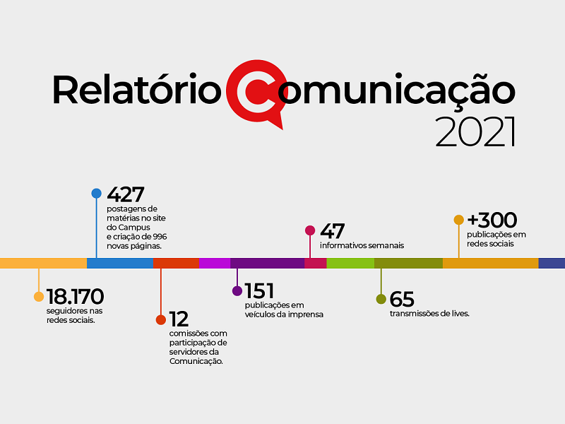 A Coordenadoria de Comunicação Social do Campus divulgou o seu relatório de atividades referente ao ano de 2021. O documento apresenta dados sobre a divulgação das ações de ensino, pesquisa, extensão e gestão no período.