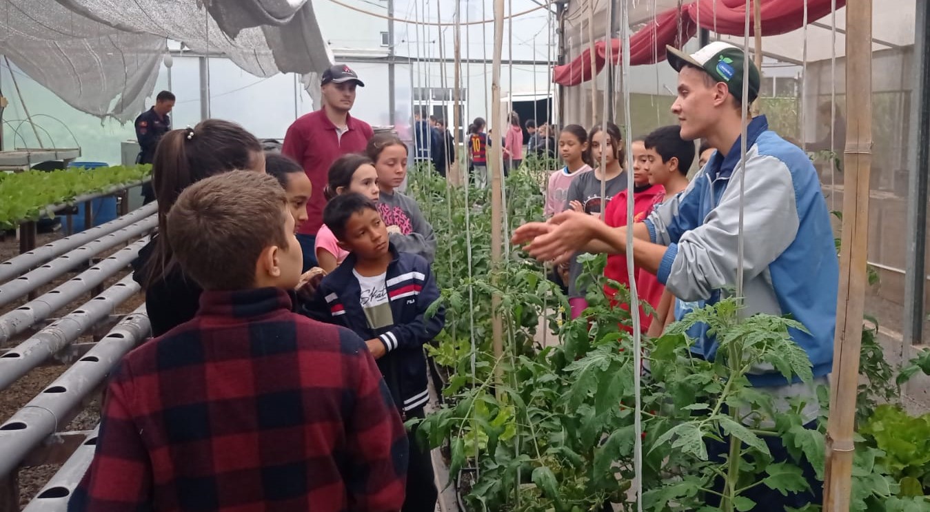 Na sexta-feira, dia 14, as crianças que estão participando do Projeto Bombeiro Mirim conheceram as estufas do Campus Bento Gonçalves e aprenderam a produzir mudas.