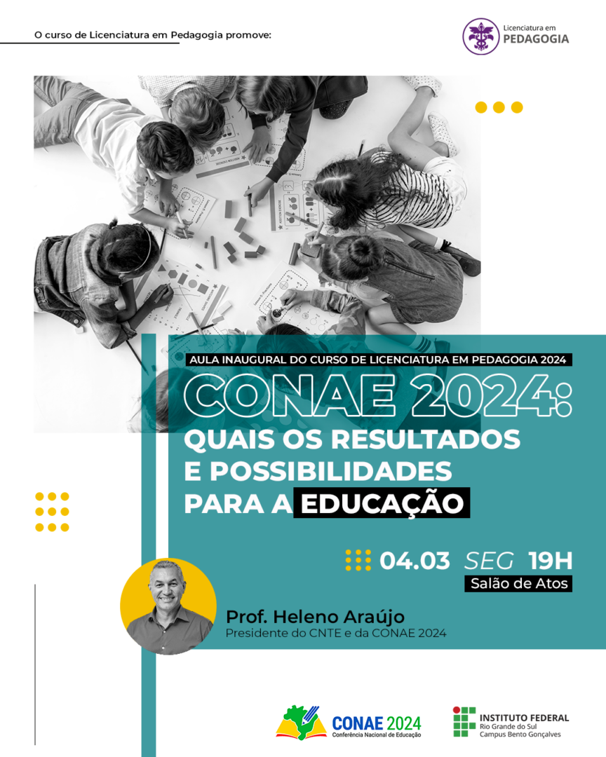 O evento será realizado no Salão de Atos e terá como tema Conae 2024: quais os resultados e possibilidades para a educação?