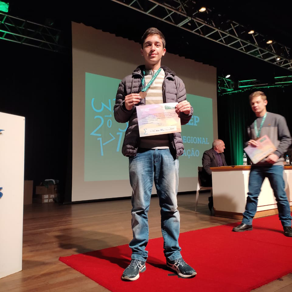 O estudante Luiz Eduardo Carneiro, do 3º ano do Curso Técnico em Informática para Internet do Campus Bento Gonçalves, encerra sua passagem pelo ensino médio com um feito extraordinário: ao longo de sua formação, conquistou 13 medalhas em olimpíadas científicas, sendo 12 nacionais e uma regional, além de diversas menções honrosas que também marcaram sua trajetória. As conquistas abrangem diferentes áreas do conhecimento, como matemática, ciências, astronomia, biotecnologia e linguística, evidenciando a ampla formação acadêmica construída ao longo dos últimos anos.