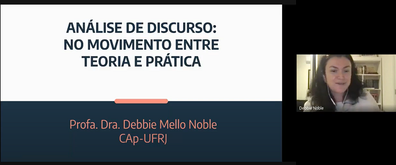 Na segunda, a doutora Debbie Mello Noble, do Colégio de Aplicação da UFRJ, debateu com os alunos o movimento entre a teoria e a prática de análise de textos sob a perspectiva da Análise de Discurso. “Foi uma oportunidade incrível de receber especialistas nas áreas e, com eles, desenvolver uma troca riquíssima sobre o que constitui ser um analista. A expertise deles contribuiu muito para a formação dos estudantes e certamente lhes servirá de inspiração”, avaliou a professora Michele.