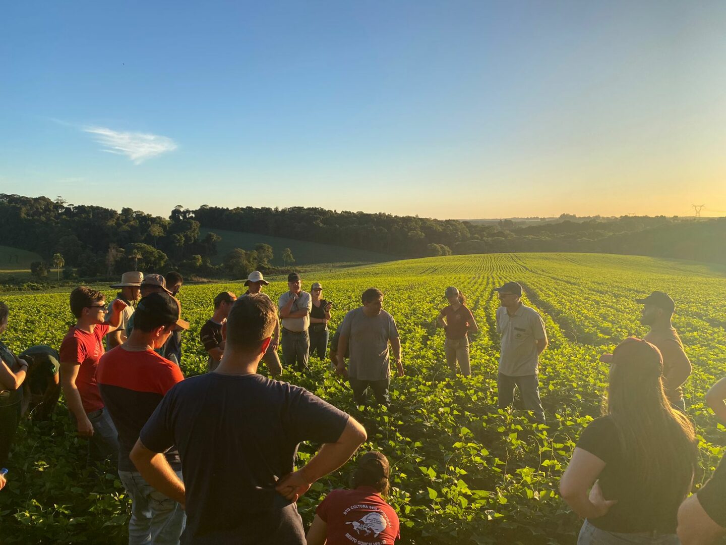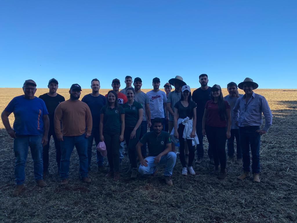 No final da tarde os alunos ainda visitaram lavouras de feijão cultivadas como safrinha em resteva de milho. Na mesma propriedade foi proporcionada demonstração da pulverização agrícola noturna realizada pelo jovem Felipe Fiorilo Matias da Rosa, oportunizando aos alunos o contato com o funcionamento de piloto automático em pulverização agrícola noturna.