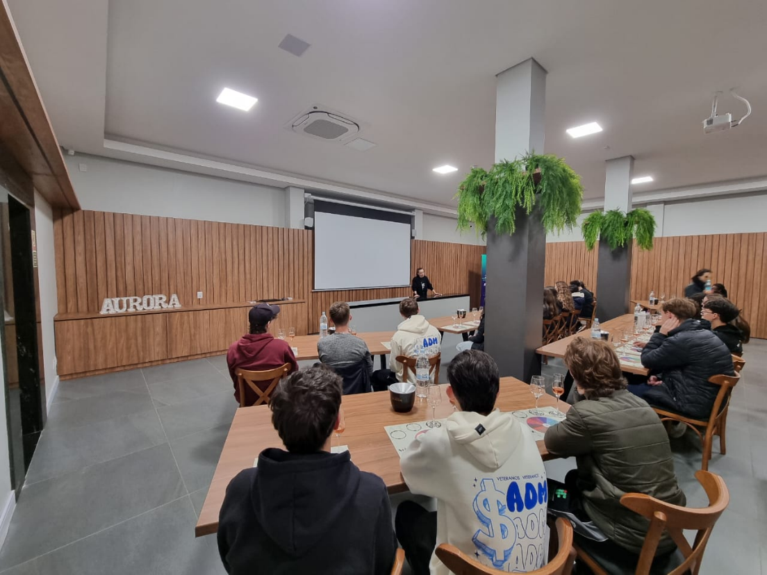 A visita a Cooperativa Vinícola Aurora representou uma oportunidade aos estudantes conhecerem a história da maior Cooperativa do Brasil, com mais de 1.100 famílias associadas. Um exemplo de governança, de resiliência, com compromissos sociais, ambientes e culturais e diversas certificações internacionais como a certificação FSC, além de todo um trabalho na Estratégia ESG. É uma empresa internacionalizada, com atuação sólida em diversos mercados externos. Para os estudantes, poder compartilhar conhecimentos e vivências com a profissional Giorgia Mezacasa Forest que é a Supervisora do departamento de importações e exportações foi fundamental para o processo de ensino e aprendizagem, principalmente relacionado ao componente de Fundamentos de Comércio Internacional.