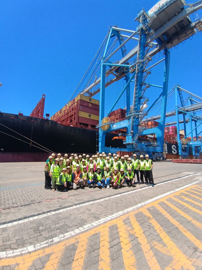Na oportunidade, os estudantes foram recepcionados pelo colaborador Richard Almeida, responsável pelo setor comercial, que apresentou sobre as atividades realizadas no Porto e após um longo “bate-papo” e histórias sobre as mais diversas situações, mostrou as instalações do terminal. Pudemos ver in loco a operação de um grande navio de 330 metros, o que agregou muitos conhecimentos a todos os presentes. A visita técnica proporcionou vivenciar na prática muitos conteúdos abordados em sala de aula, aproximando e exemplificando por meio de situações reais a teoria relacionada ao comércio internacional. Como relato, segue fala da estudante Gleciane: “Com toda certeza essa visita técnica foi enriquecedora, pois vi na prática alguns conceitos teóricos já estudados, pude ter uma visão bem ampla de como funcionam as operações portuárias, vê a realidade do dia a dia é incrível”.