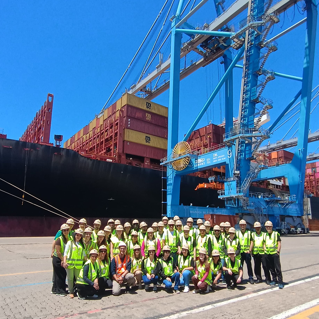 Na oportunidade, os estudantes foram recepcionados pelo colaborador Richard Almeida, responsável pelo setor comercial, que apresentou sobre as atividades realizadas no Porto e após um longo “bate-papo” e histórias sobre as mais diversas situações, mostrou as instalações do terminal. Pudemos ver in loco a operação de um grande navio de 330 metros, o que agregou muitos conhecimentos a todos os presentes. A visita técnica proporcionou vivenciar na prática muitos conteúdos abordados em sala de aula, aproximando e exemplificando por meio de situações reais a teoria relacionada ao comércio internacional. Como relato, segue fala da estudante Gleciane: “Com toda certeza essa visita técnica foi enriquecedora, pois vi na prática alguns conceitos teóricos já estudados, pude ter uma visão bem ampla de como funcionam as operações portuárias, vê a realidade do dia a dia é incrível”.