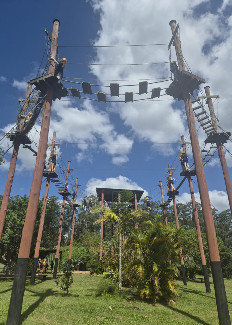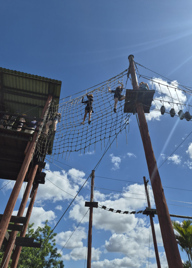 Durante a visita, os estudantes desenvolveram atividades físicas em ambiente natural, como arvorismo, tirolesa, trilhas, travessia de ponte e outras práticas que exigem coordenação motora, resistência física e trabalho em equipe.