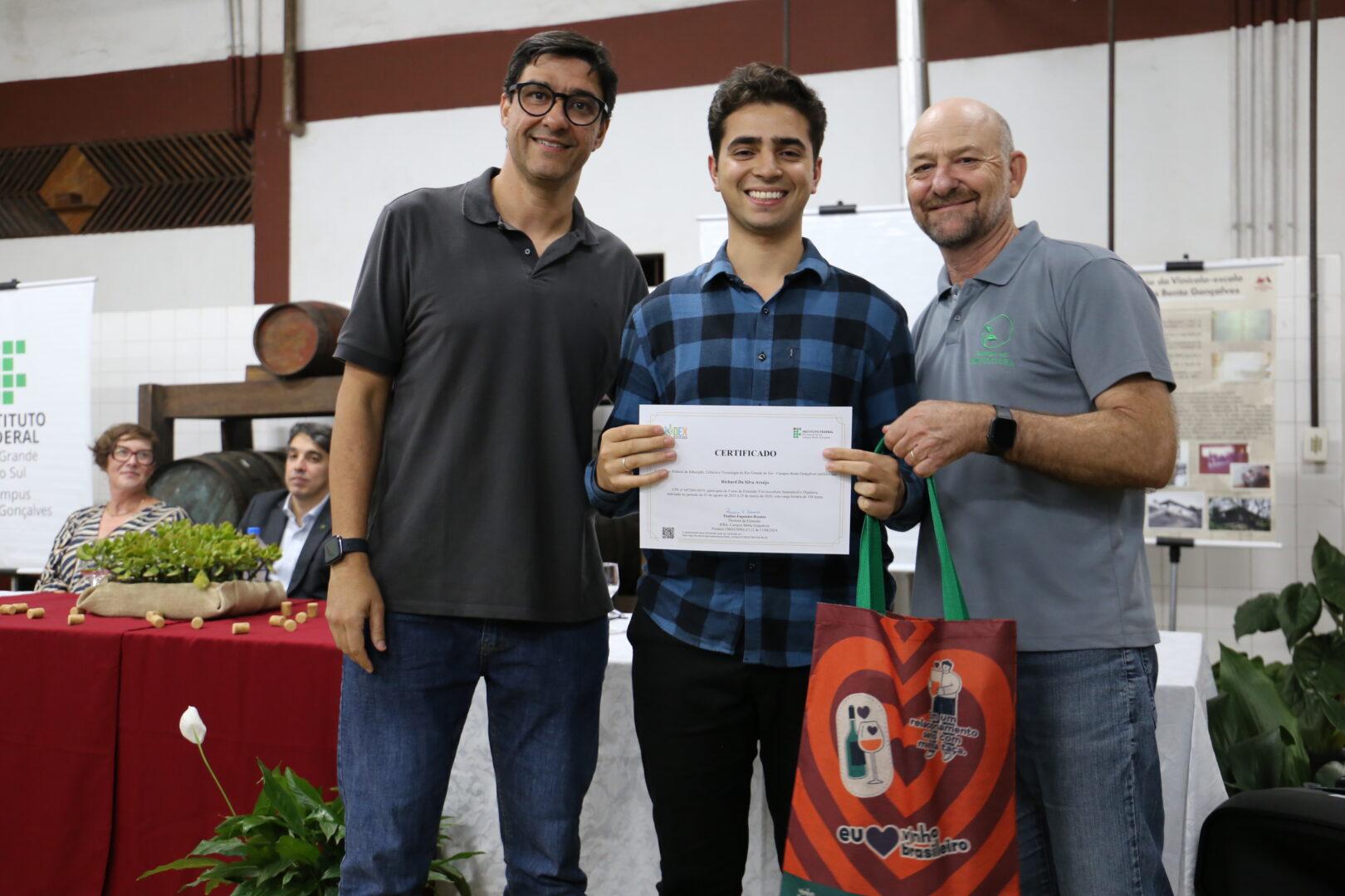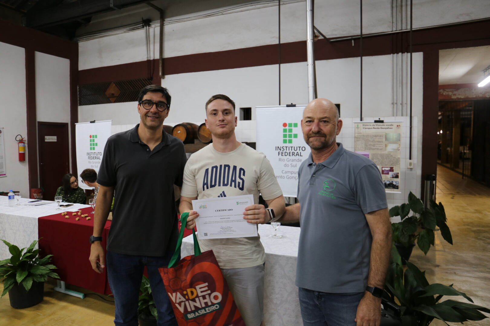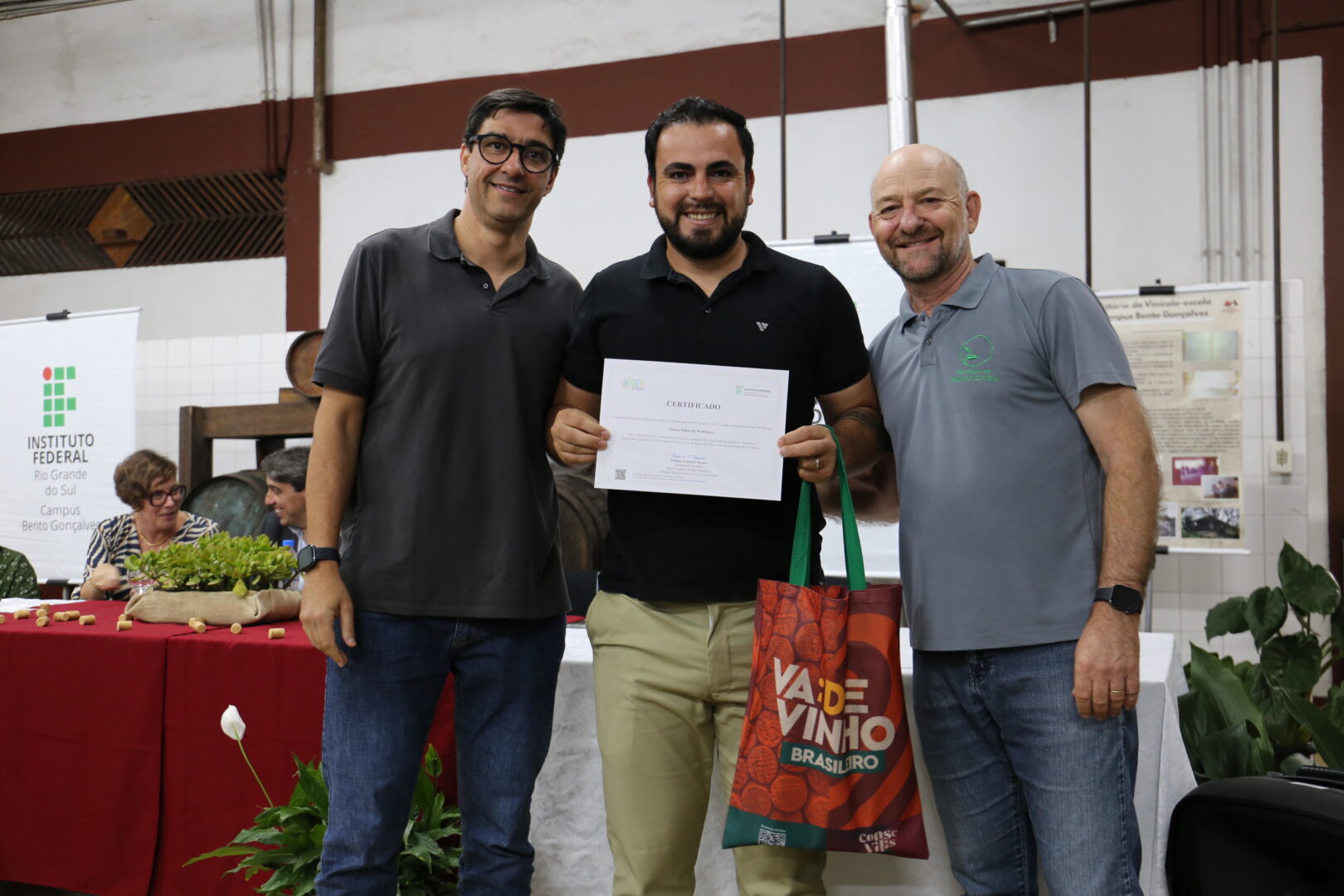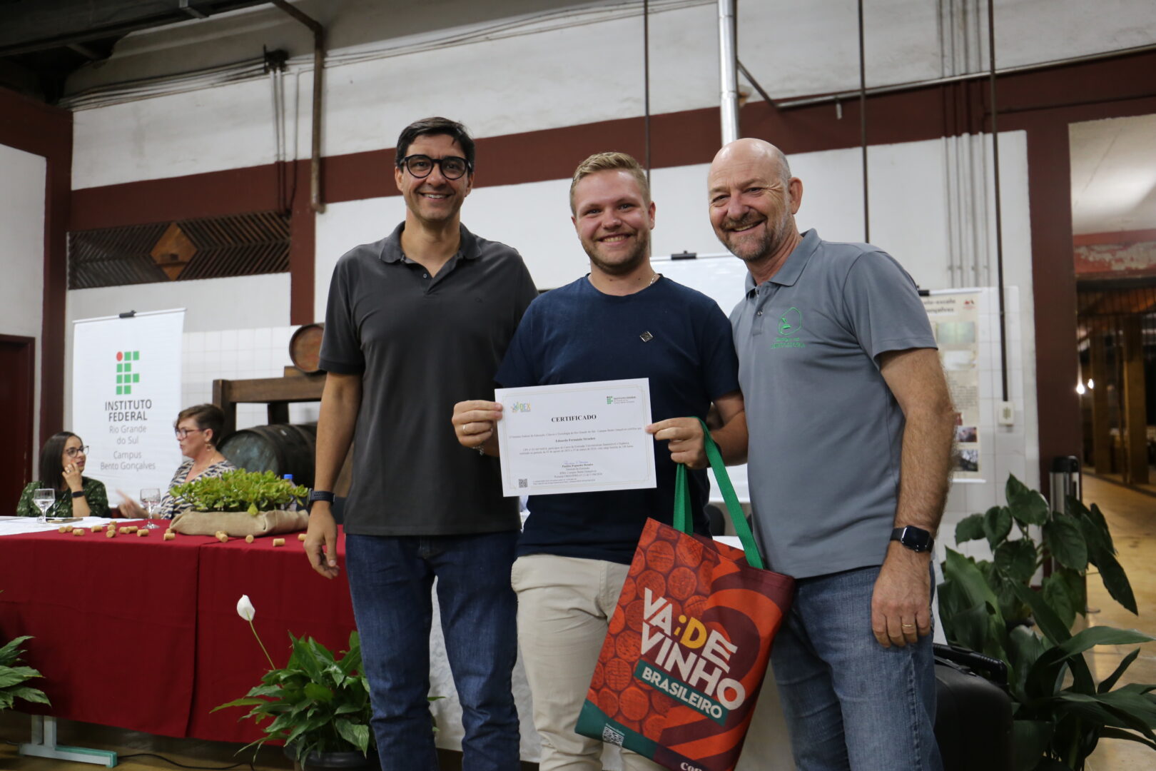 Na noite de ontem, 22 de abril de 2026, o Instituto Federal de Educação, Ciência e Tecnologia do Rio Grande do Sul (IFRS) – Campus Bento Gonçalves celebrou a entrega de certificados aos participantes do Curso em Vitivinicultura Sustentável e Orgânica. A solenidade ocorreu às 18h, nas dependências da Vinícola Escola. Destinado a jovens da Serra Gaúcha, o projeto de extensão foi criado para fomentar práticas de manejo mais sustentáveis no cultivo da videira. A iniciativa buscou promover a qualificação técnica de jovens produtores, incentivando o uso do manejo orgânico, a valorização de bioinsumos e a redução de insumos químicos.