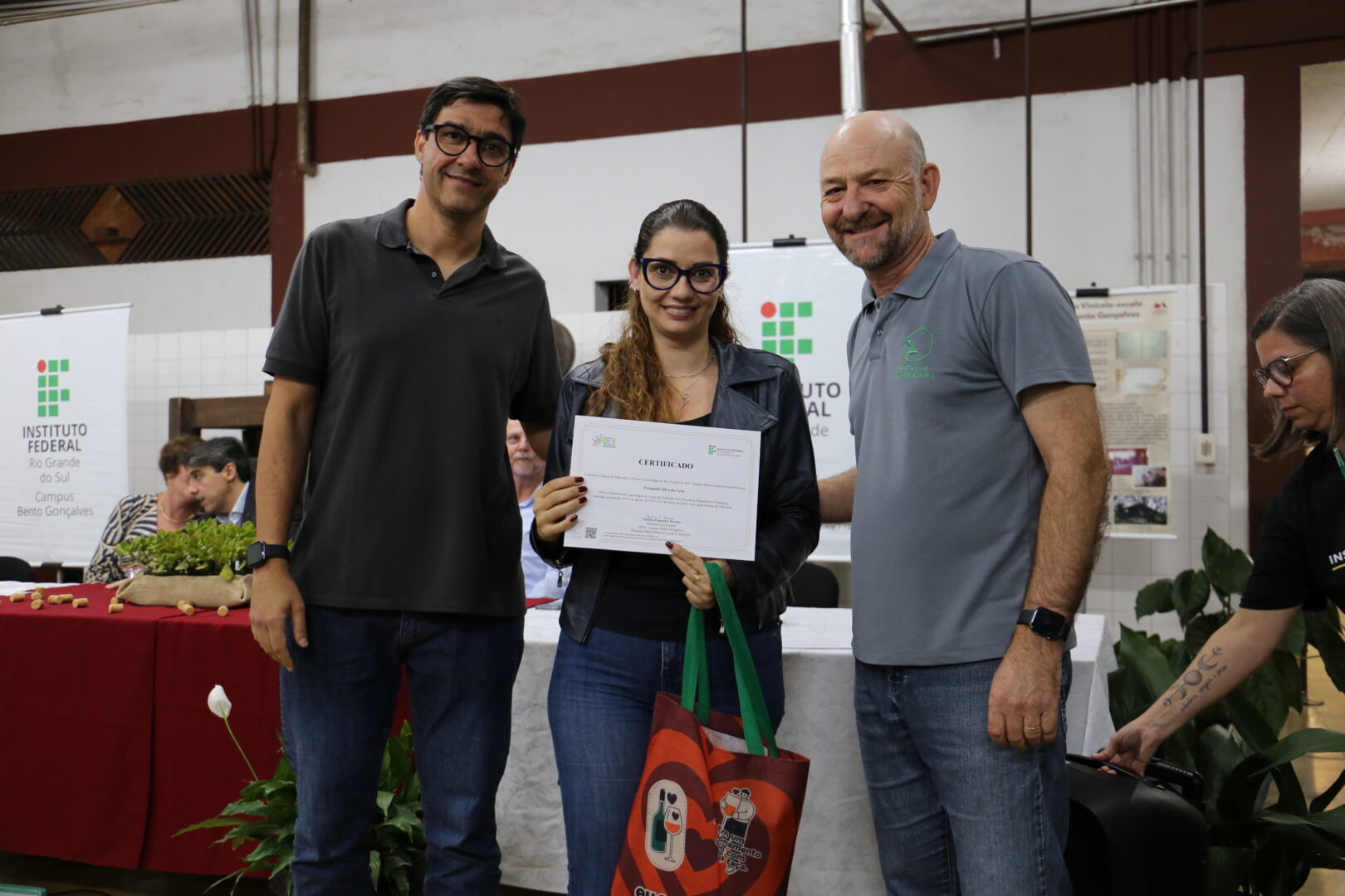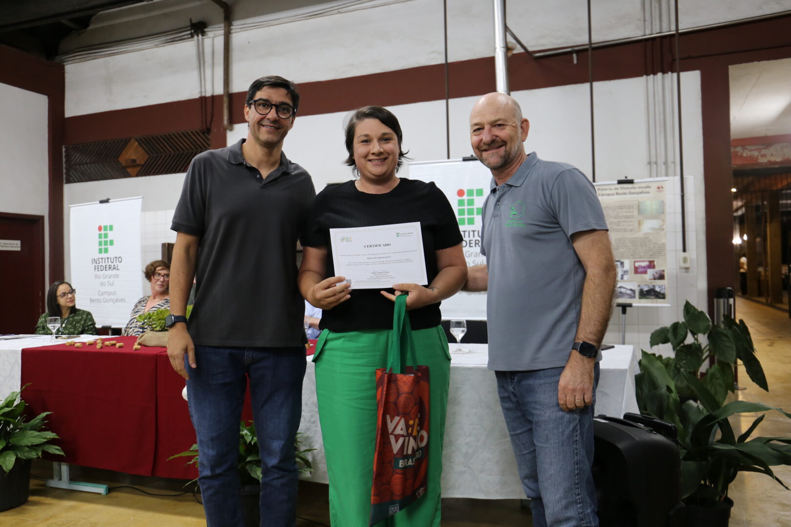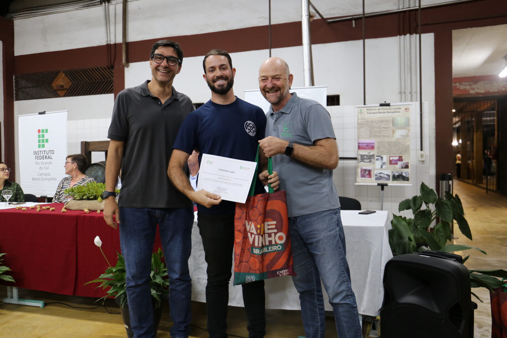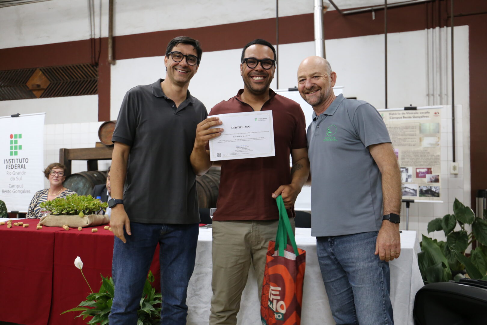 Na noite de ontem, 22 de abril de 2026, o Instituto Federal de Educação, Ciência e Tecnologia do Rio Grande do Sul (IFRS) – Campus Bento Gonçalves celebrou a entrega de certificados aos participantes do Curso em Vitivinicultura Sustentável e Orgânica. A solenidade ocorreu às 18h, nas dependências da Vinícola Escola. Destinado a jovens da Serra Gaúcha, o projeto de extensão foi criado para fomentar práticas de manejo mais sustentáveis no cultivo da videira. A iniciativa buscou promover a qualificação técnica de jovens produtores, incentivando o uso do manejo orgânico, a valorização de bioinsumos e a redução de insumos químicos.