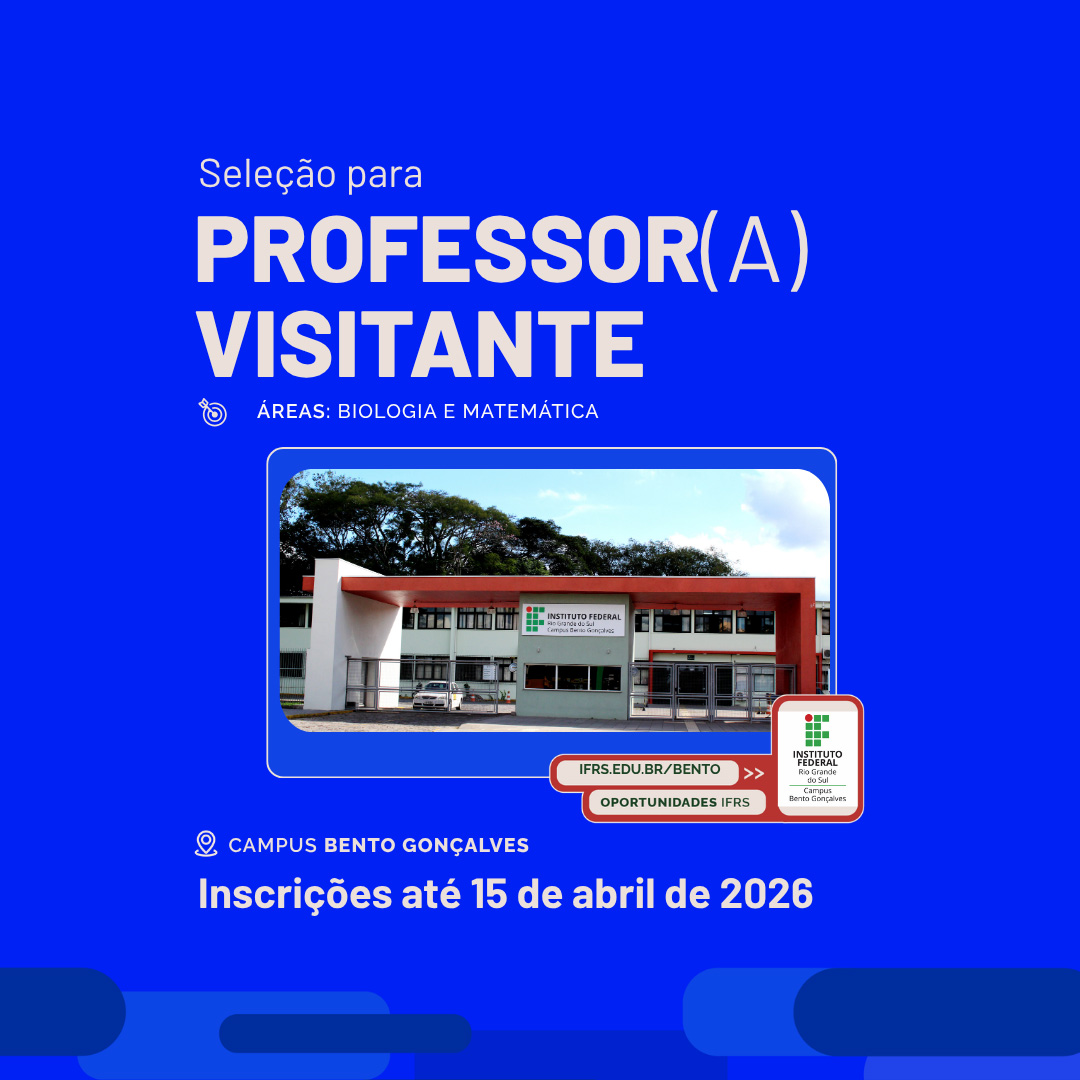 O IFRS Campus Bento Gonçalves torna pública a abertura de inscrições para o Processo Seletivo Simplificado destinado à contratação de professores visitantes por tempo determinado. O processo, regido pelo Edital Nº 21-2026 (retificado em 07/04/2026), visa selecionar profissionais de reconhecida competência em suas áreas de atuação para atender às necessidades da instituição.