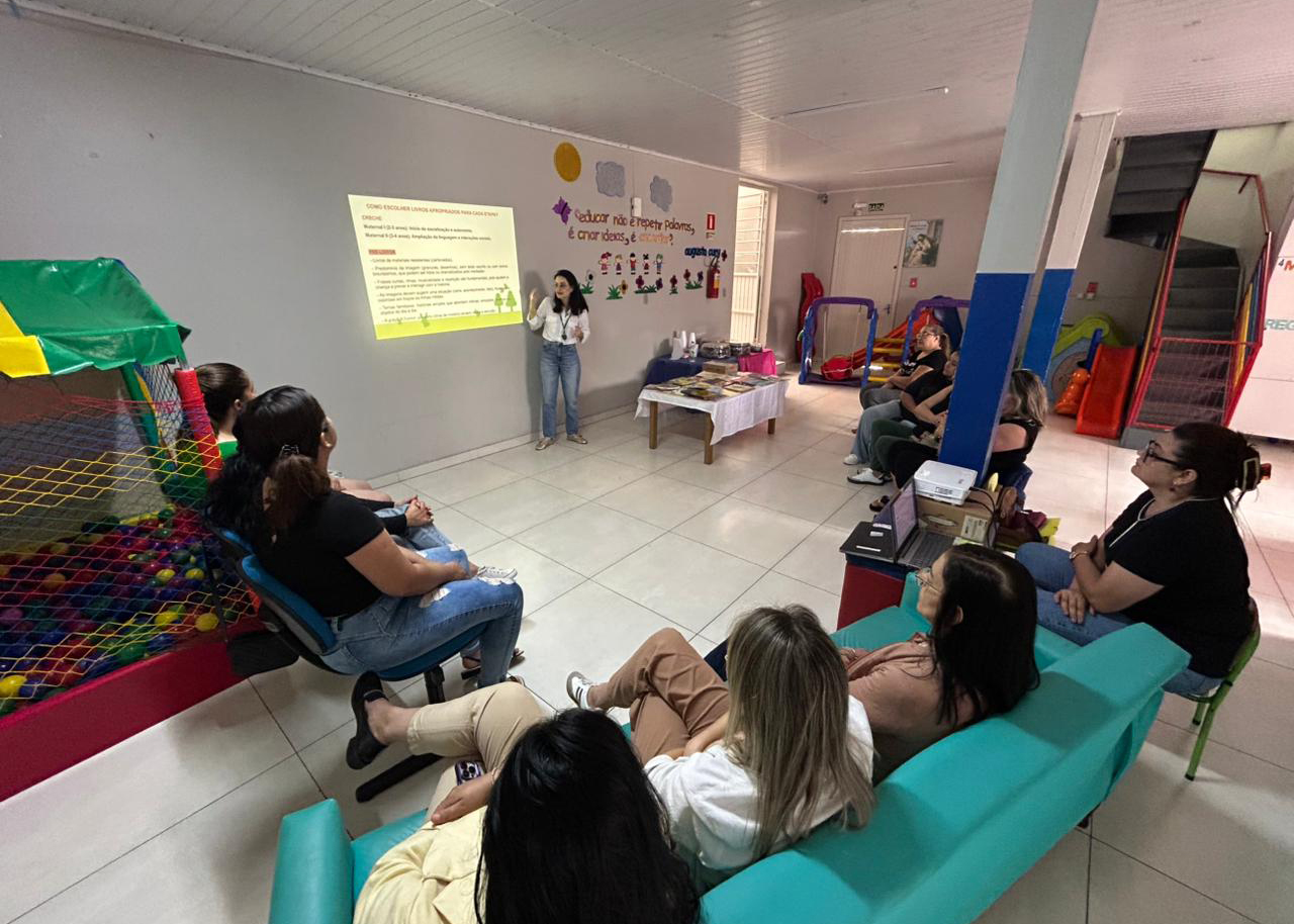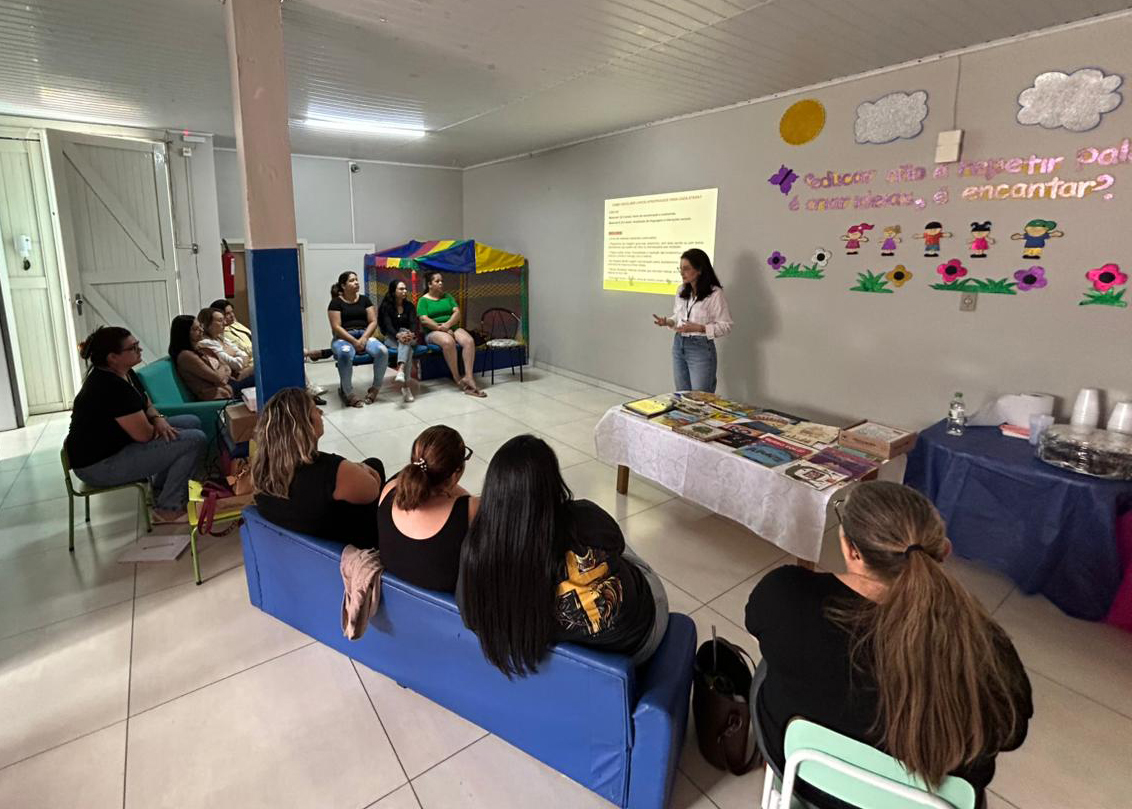 No sábado, 14 de março, professoras e auxiliares de educação das escolas de Educação Infantil Cantinho Encantado e Cantinho Cores e Amores, ambas localizadas em Bento Gonçalves, participaram de uma oficina sobre literatura infantil.