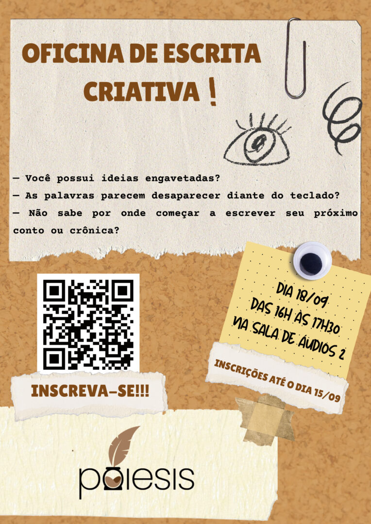 O Projeto de Ensino Poiesis: o despertar da escrita promove uma oficina de contos e crônicas voltada à comunidade acadêmica.