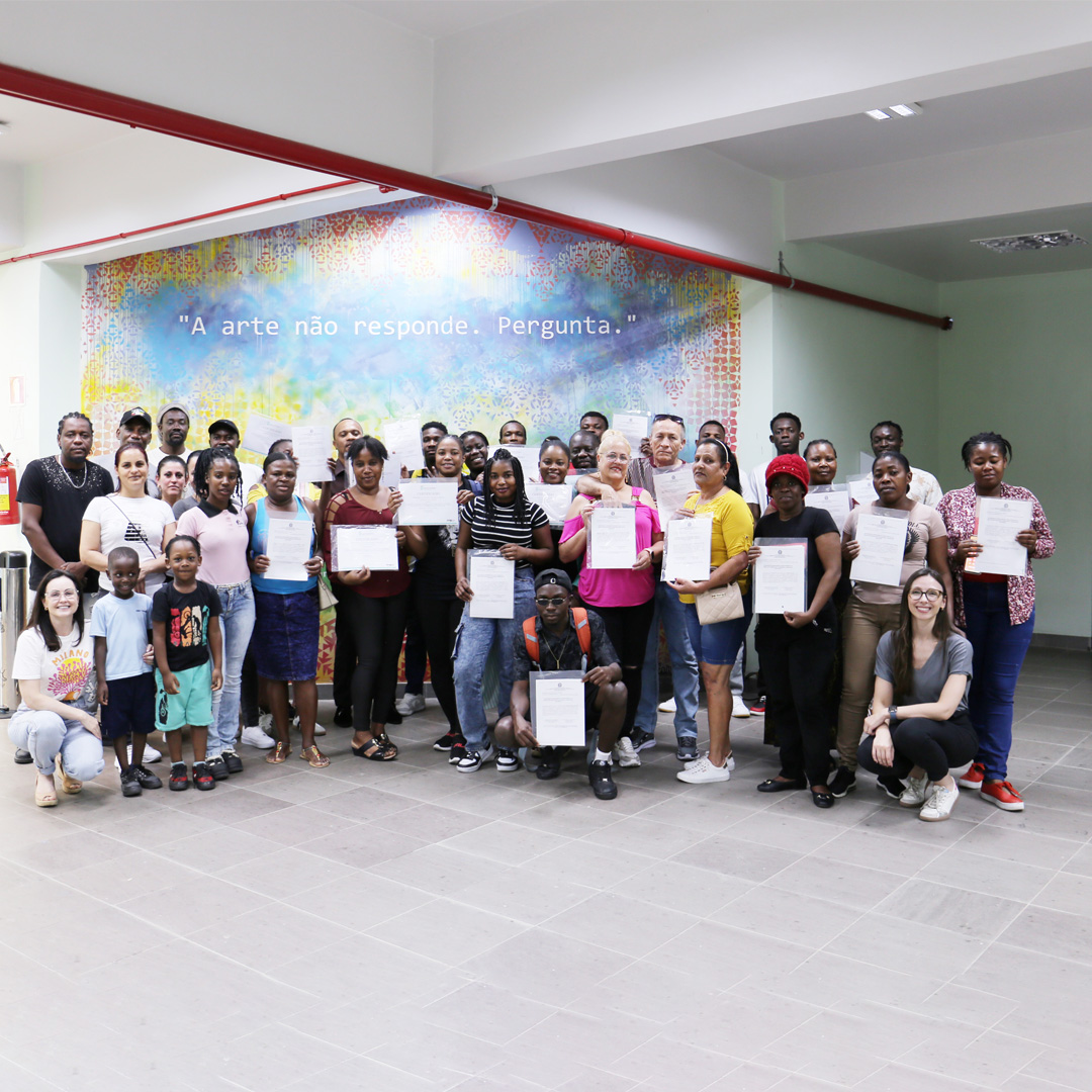 Na última terça-feira, 02 de dezembro, trinta e cinco estudantes de nacionalidade haitiana e cubana receberam o certificado de conclusão do Curso de Língua Portuguesa para imigrantes e refugiados.