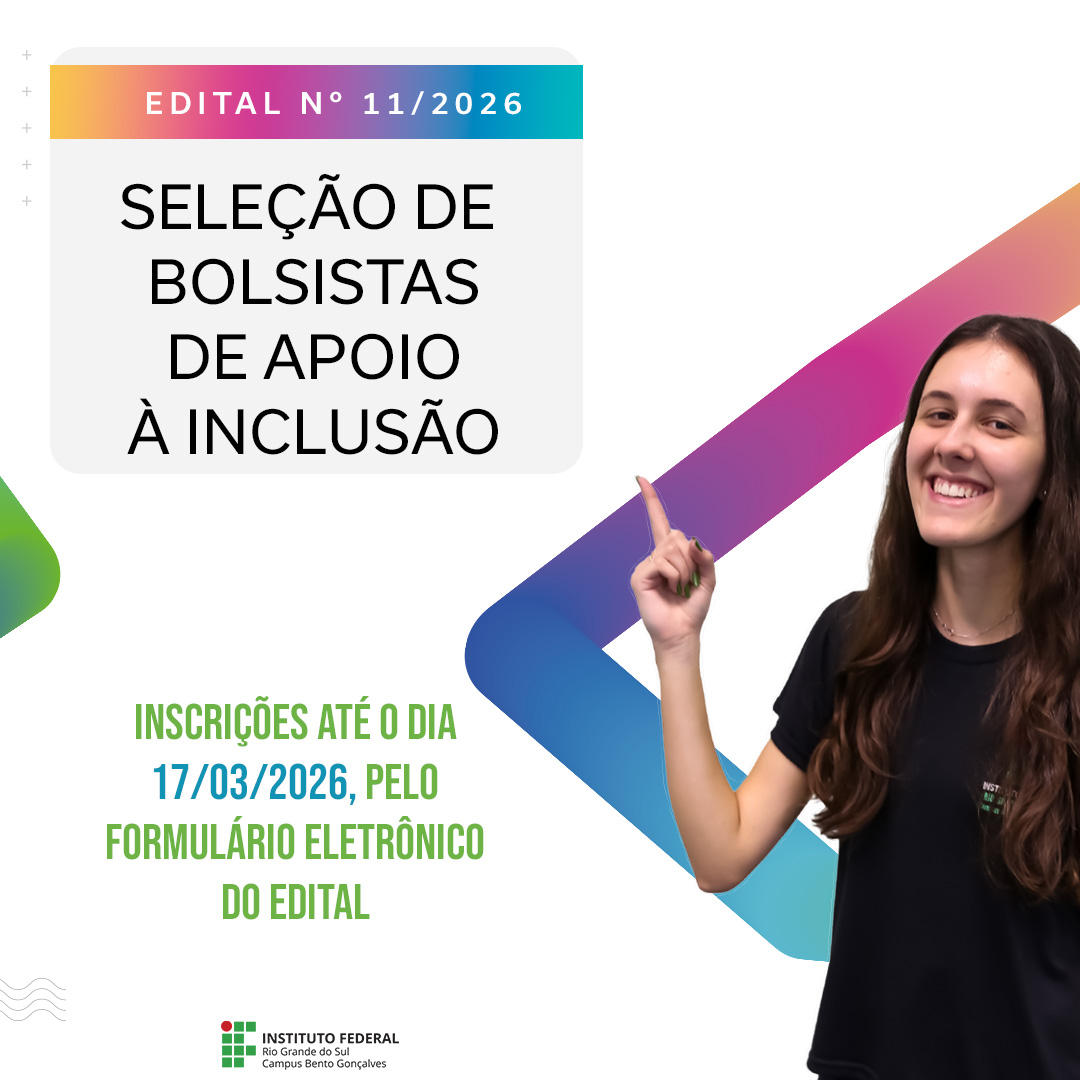 Foi publicado o Edital Nº 11/2026, referente à seleção de bolsistas de apoio à inclusão, para atuarem no atendimento/apoio de estudantes