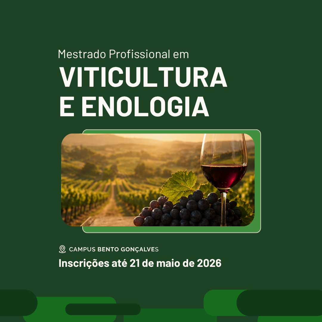 Foi publicado na sexta-feira, 24 de abril, o Edital nº 26/2026, que regra o Processo Seletivo do Mestrado Profissional em Viticultura e Enologia, turma 2026. As inscrições iniciam no dia 27 de abril e encerram no dia 21 de maio de 2026. São ofertadas 30 vagas, sendo 20 delas para o Campus Bento Gonçalves e 10 para Campus Urupema do Instituto Federal de Santa Catarina (IFSC).