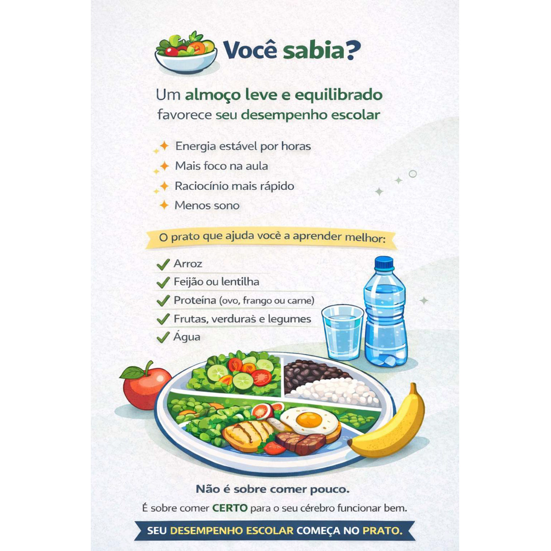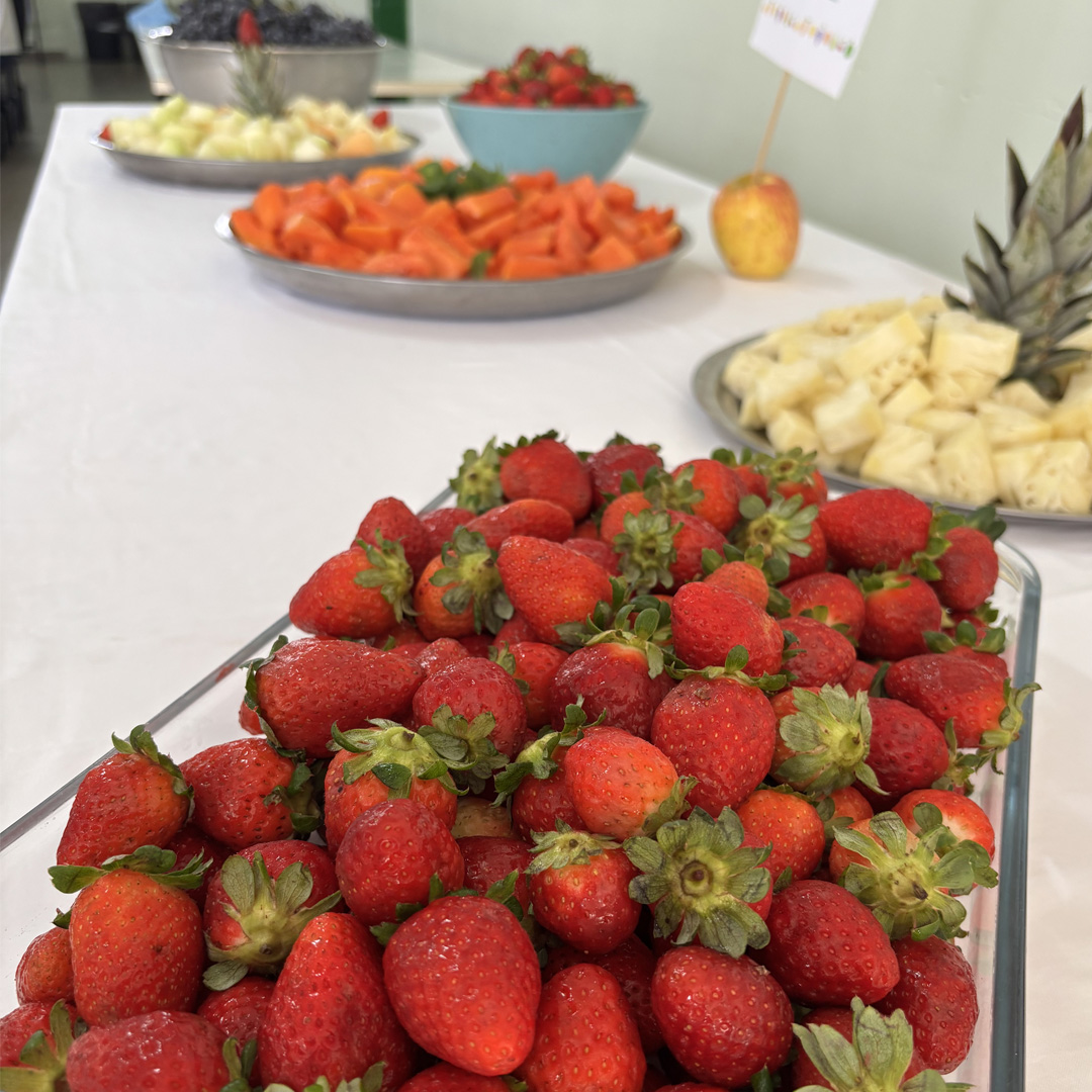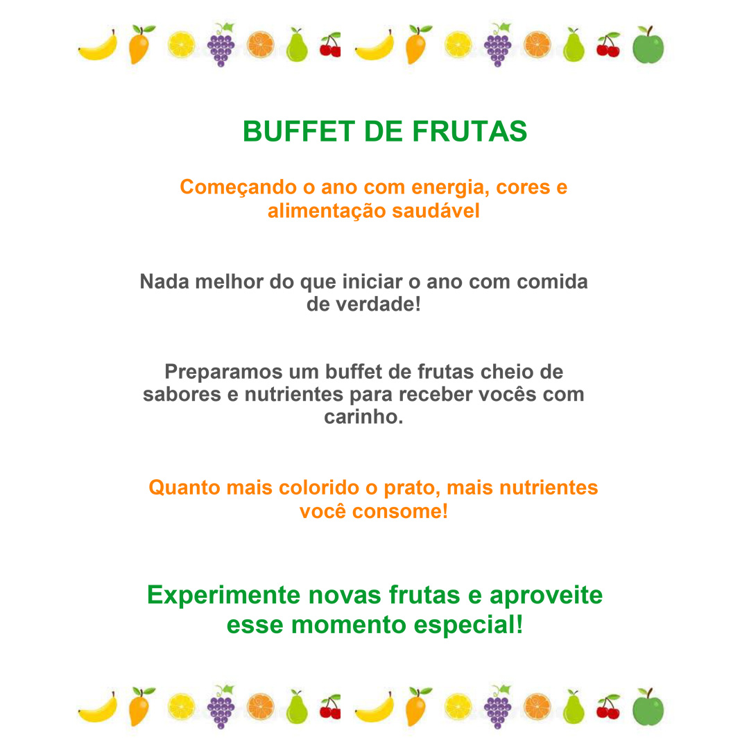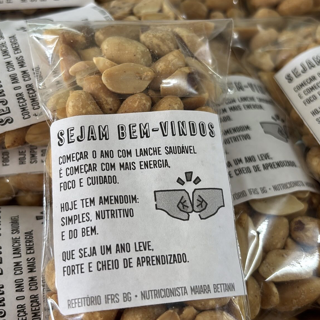 No primeiro dia de aula, os estudantes foram recepcionados com um buffet de frutas e entrega de amendoim como lanche saudável. Informativos educativos foram deixados expostos no espaço do refeitório, relacionando alimentação, bem-estar e desempenho escolar.