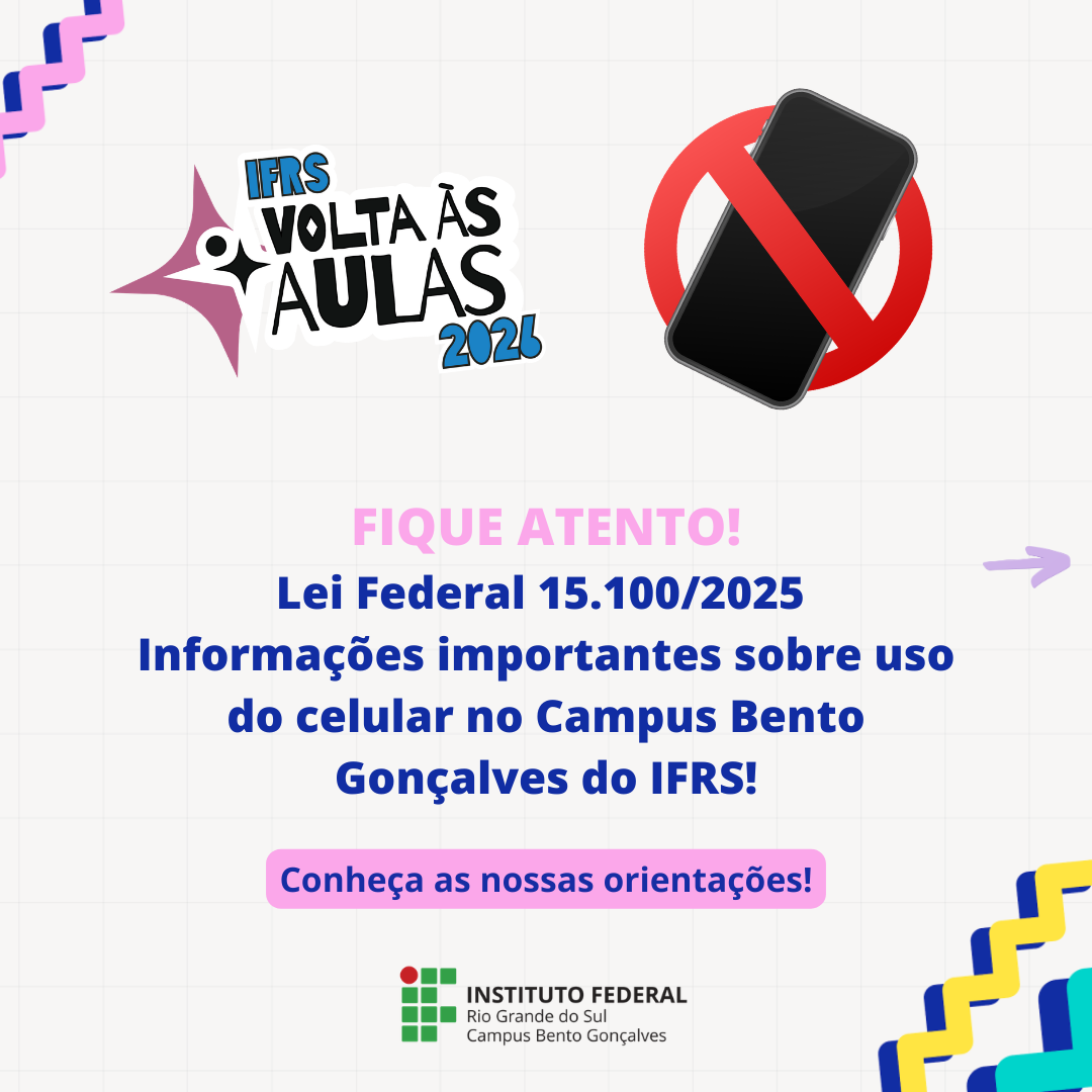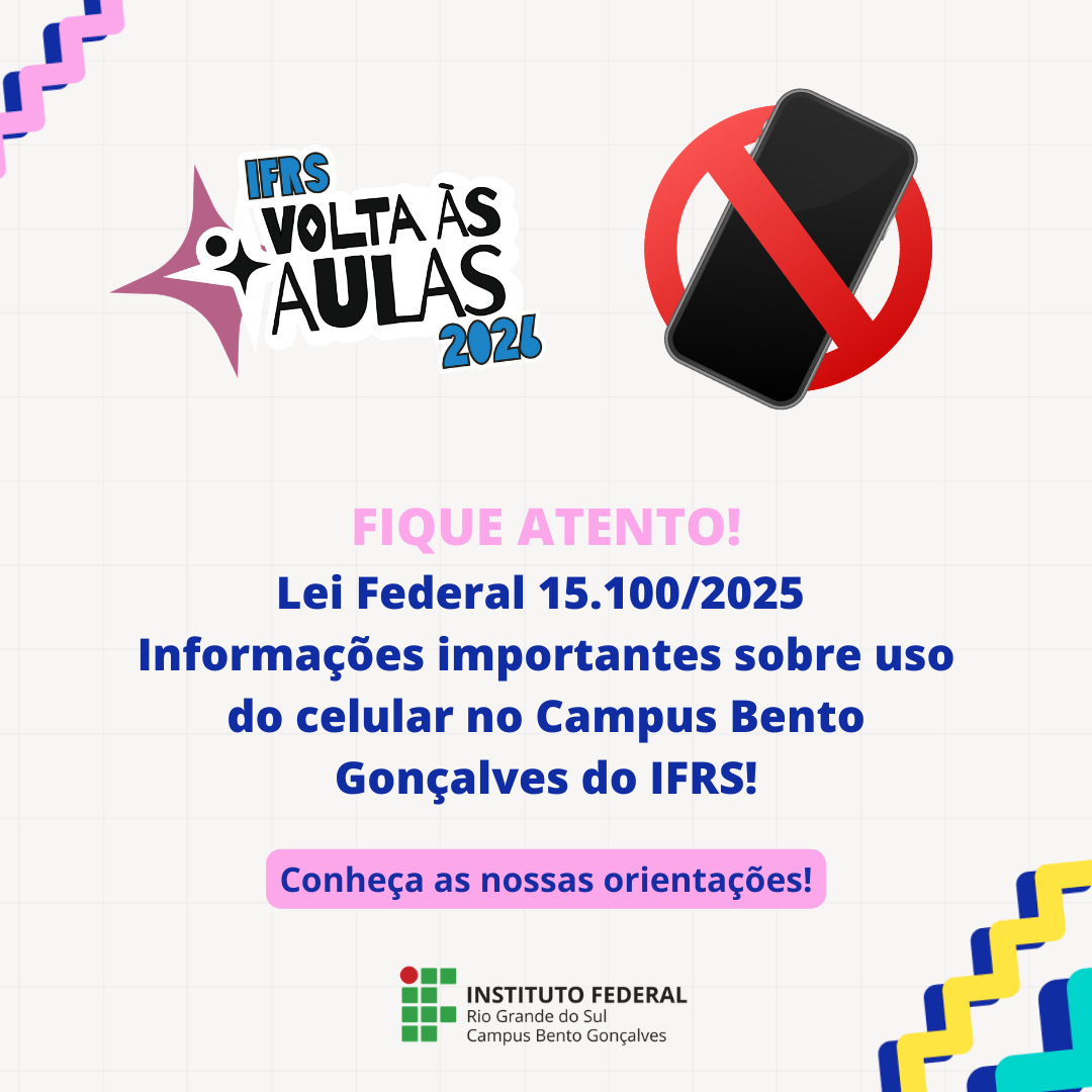 Com o início do ano letivo de 2026, o Campus Bento Gonçalves do Instituto Federal do Rio Grande do Sul (IFRS) reforça as diretrizes da Lei Federal nº 15.100/2025, que estabelece normas para o uso de celulares no ambiente escolar. A medida define as situações em que o uso é permitido e reforça as restrições durante as aulas e os intervalos, com o objetivo de garantir o foco nas atividades pedagógicas e qualificar a convivência no espaço escolar.