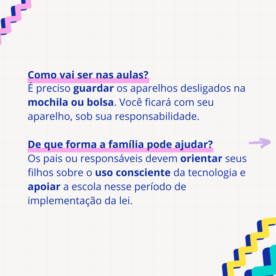 Orienta-se que as famílias dialoguem com os estudantes sobre o uso consciente da tecnologia e apoiem o processo de implementação da legislação.