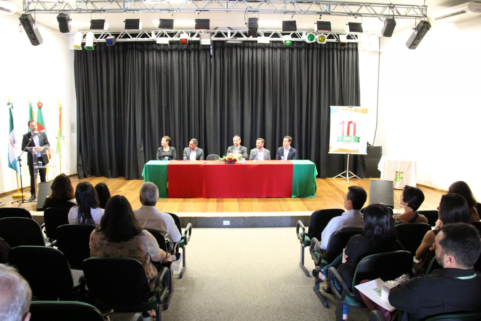 O reitor destacou que, graças ao esforço coletivo dos servidores, o IFRS é hoje uma instituição respeitada e importante para os municípios em que está inserido. “Digo isso para nos darmos conta do quanto fomos importantes para chegarmos a esses 10 anos: cada um a seu modo, dando a sua contribuição, que não deve passar despercebida.” Ele prestou um reconhecimento ao professor José Eli Santos do Santos, um dos homenageados pelo tempo de serviço, que é ex-reitor substituto e assumiu como reitor “em um momento difícil para a instituição”, do falecimento do reitor Osvaldo Casares Pinto (em dezembro de 2017) até a nomeação de Júlio (em maio de 2018).