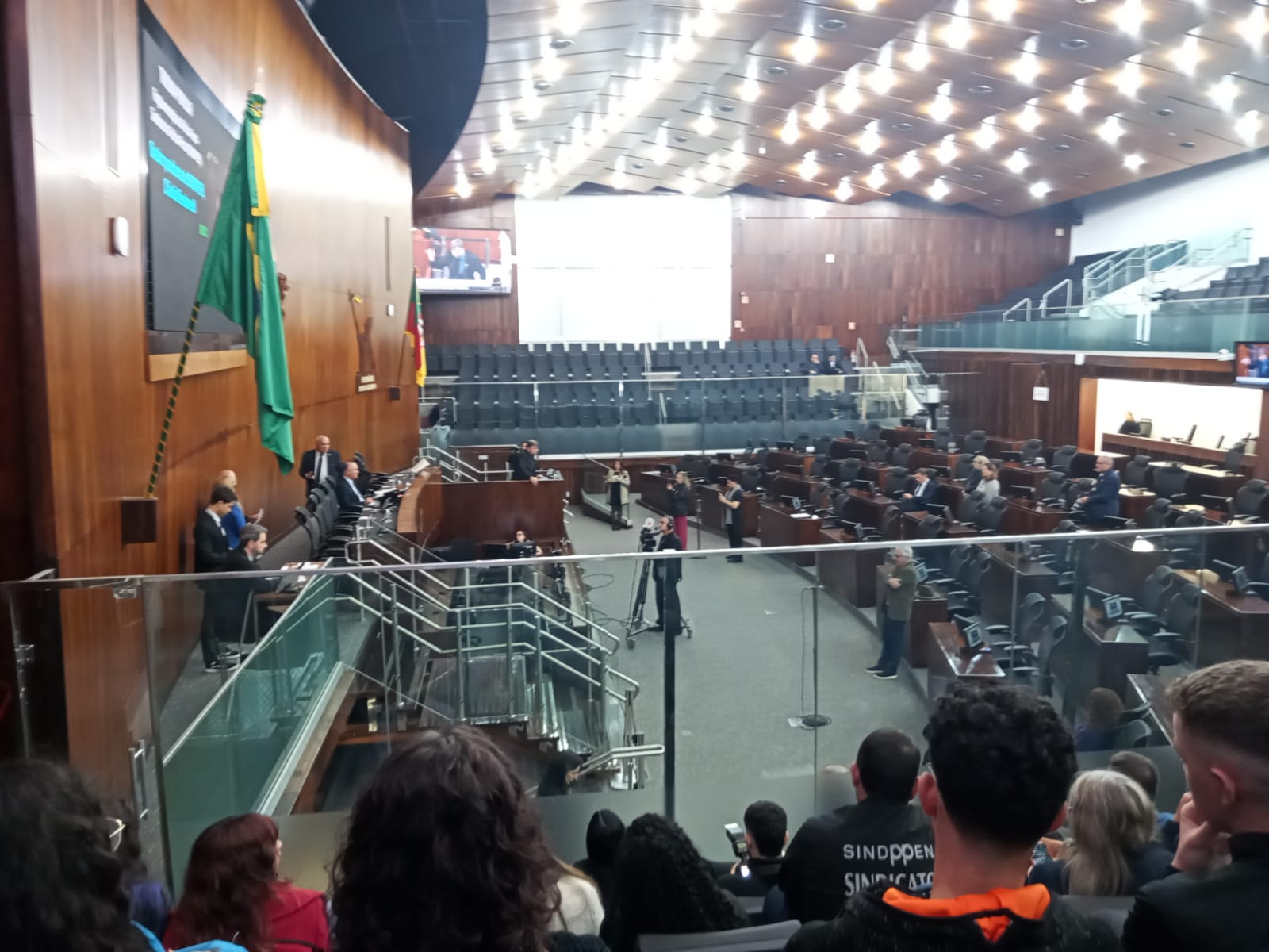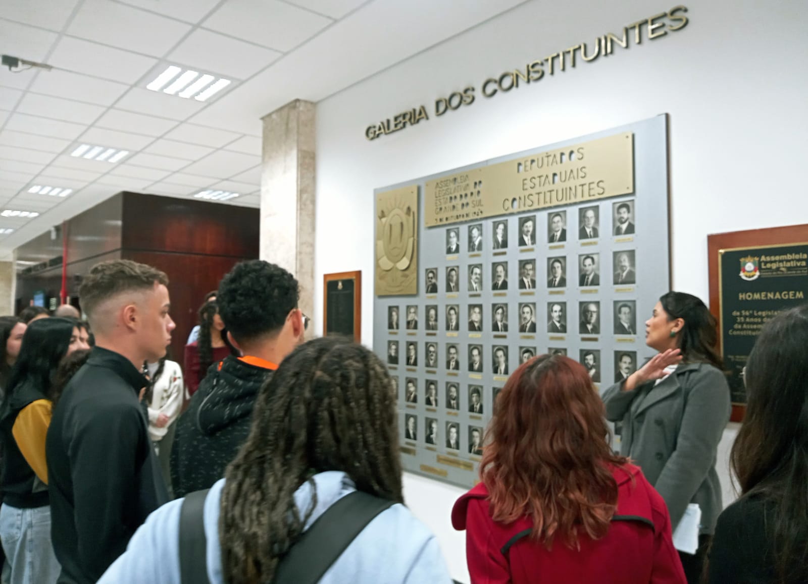 A atividade iniciou com uma visita à Assembleia Legislativa do Estado do Rio Grande do Sul, onde a servidora Luciana Bonfim gentilmente conduziu a turma pelos diferentes espaços da casa. Os estudantes puderam compreender, de forma geral, o funcionamento do trabalho dos(as) deputados(as). E também constataram que há servidores públicos que compõem o quadro permanente da Assembleia nas mais diversas áreas, com formação em comunicação, direito, letras, sociologia, além daqueles servidores que compõem o Tribunal de Contas do Estado (vinculado à Assembleia) e que possuem formação em administração, contabilidade, economia, engenharia, entre outras formações.