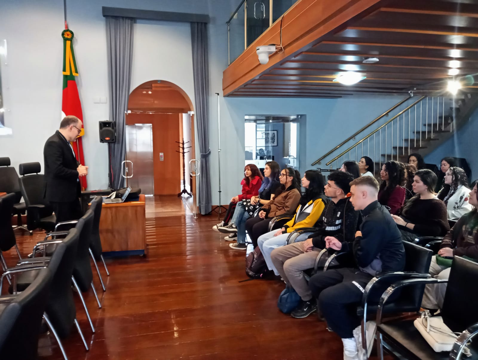 Foi possível, também, conhecer a primeira Constituição do Estado do RS, assim como parlamentares das mais diversas regiões que trabalharam na Assembleia Constituinte no período de redemocratização. A turma visitou o Plenário 20 de Setembro, onde pôde assistir uma sessão, observando o trabalho dos atuais deputados estaduais, e onde recebeu uma homenagem do presidente da mesa.